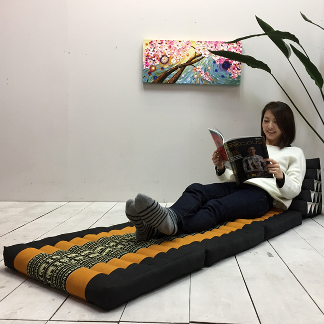 | 「座椅子」・「ソファ」・「折りたたみベッド」の要素を含んだアジアンリゾートを代表するアイテムです。お昼寝の場合はクッションを挟まれますとさらに快適です。 | |||||||||||