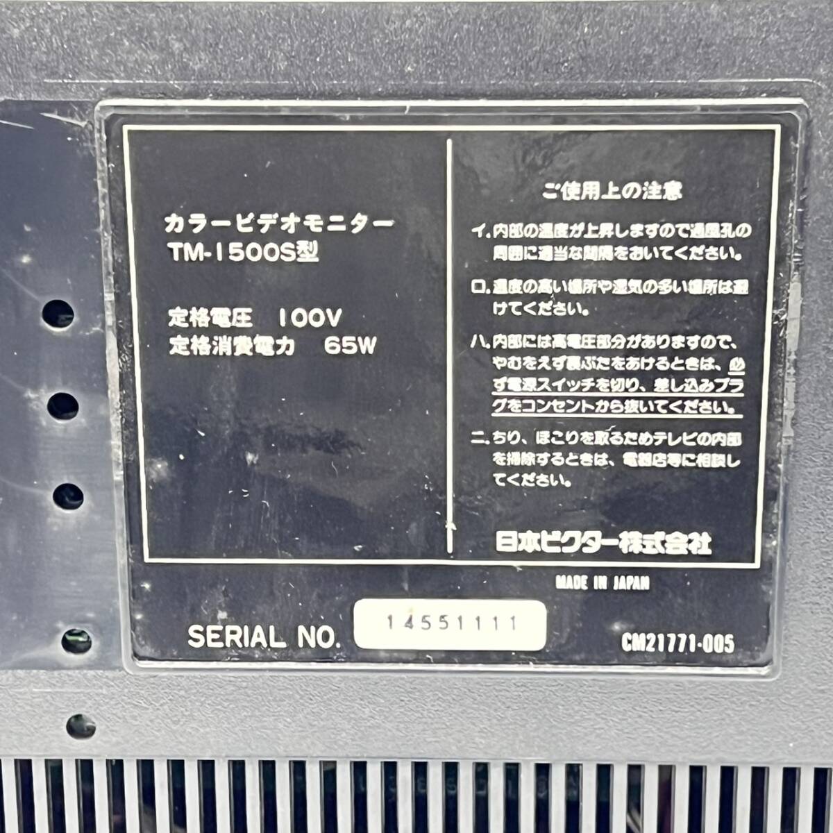 ・Victor ビクター カラーテレビモニター TM-1500S型 ブラウン管 業務用 ★580 |
