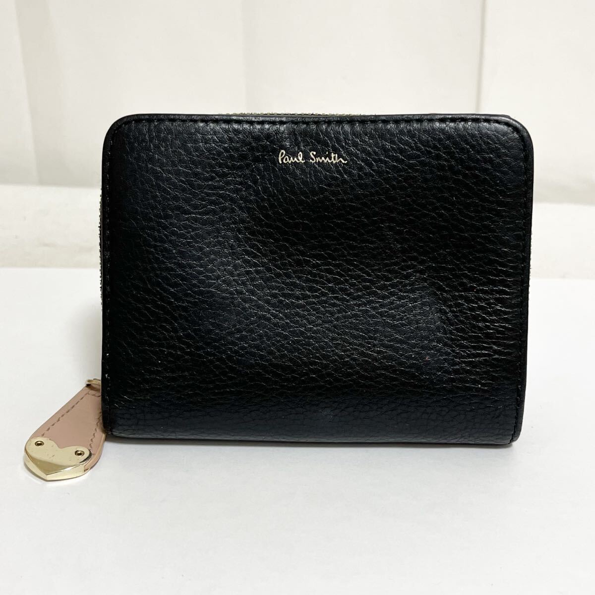 和827★ Paul Smith ポールスミス レザー 二つ折り財布 コンパクトウォレット ブラック ピンク レディース