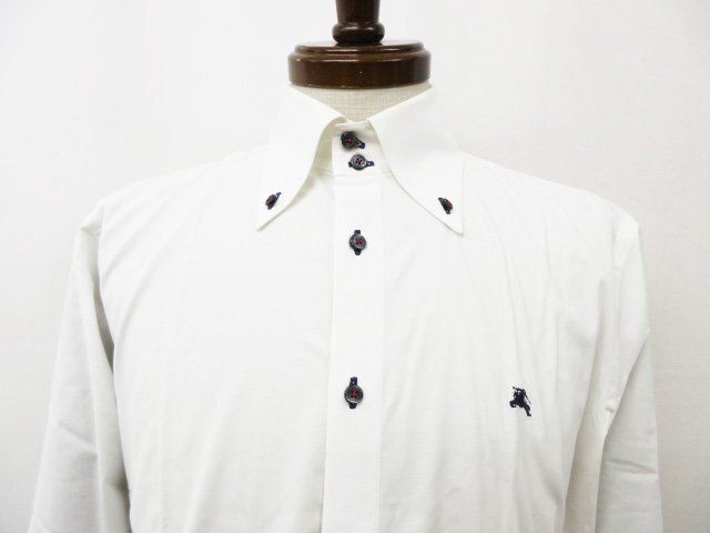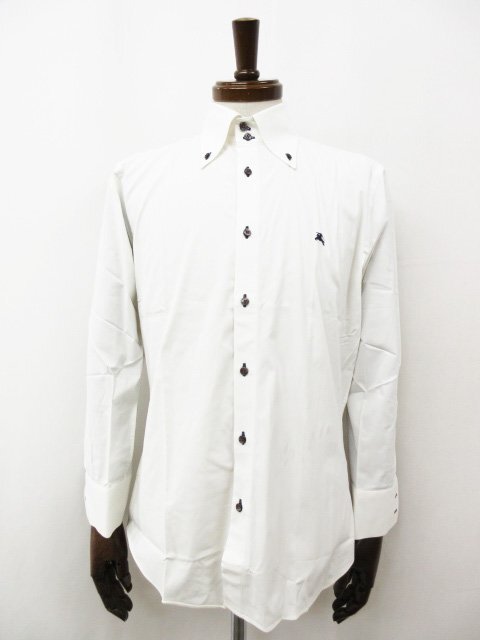 【バーバリーブラックレーベル】BMW19-801-02 ボタンダウン ドゥエボットーニ 長袖シャツ (メンズ) size3 ホワイト ◇35MK5839◇