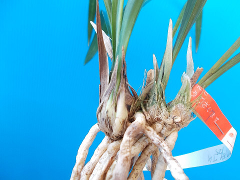 ★寒蘭★26-7 栽培品 初花・花芽付「矮鶏肉厚葉・源平柄」新木成木5条