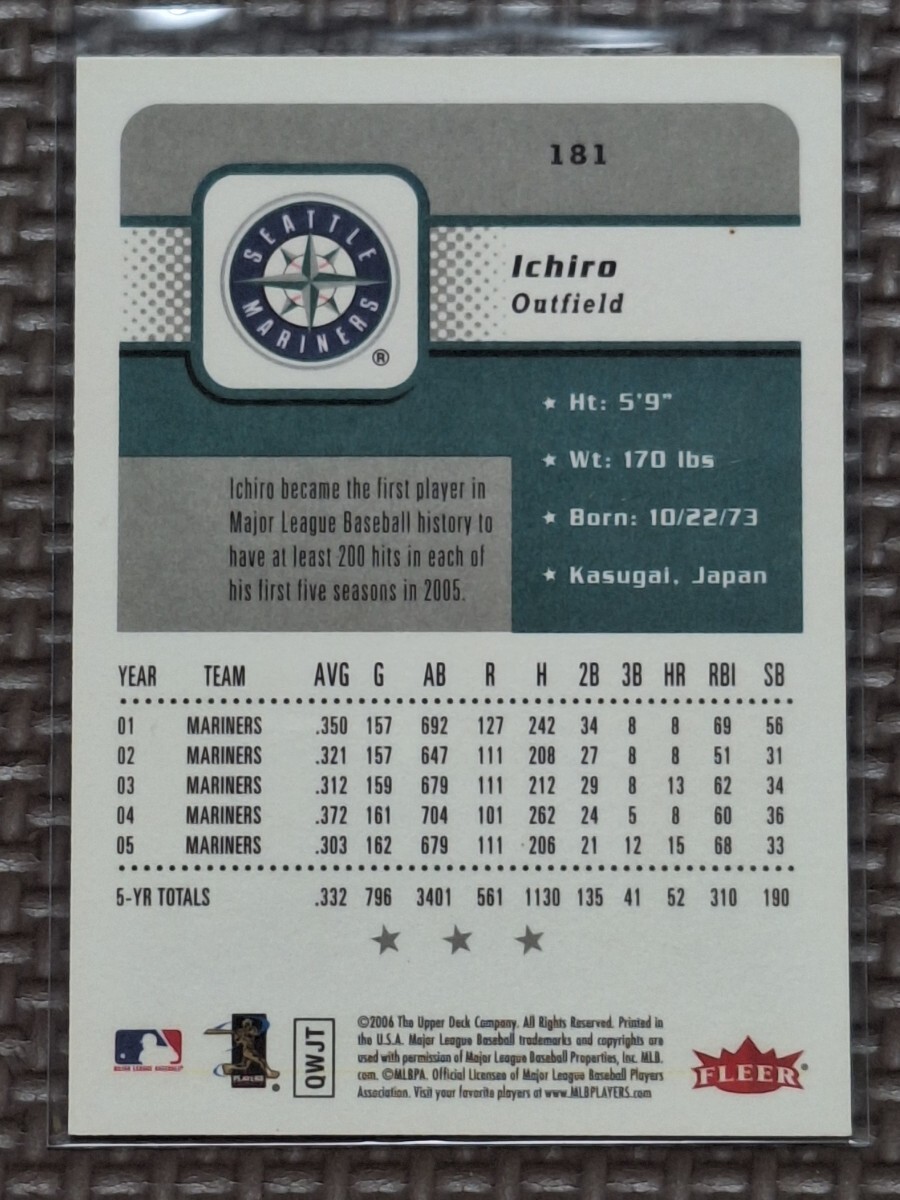 2006 Fleer #181 ICHIRO SUZUKI Seattle Mariners Orix BlueWave