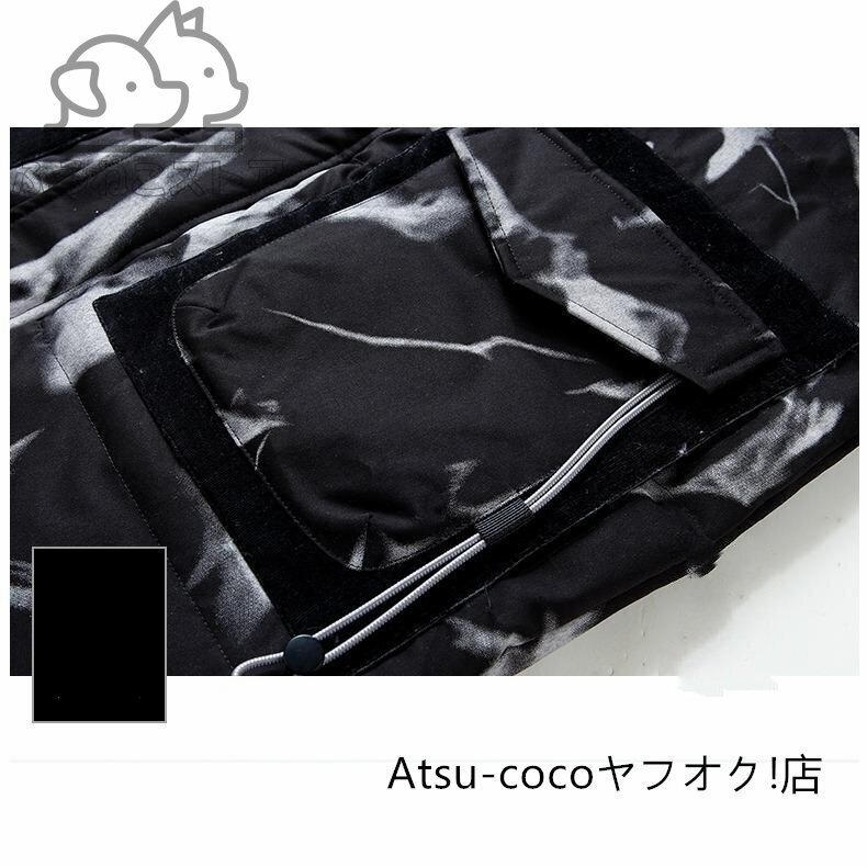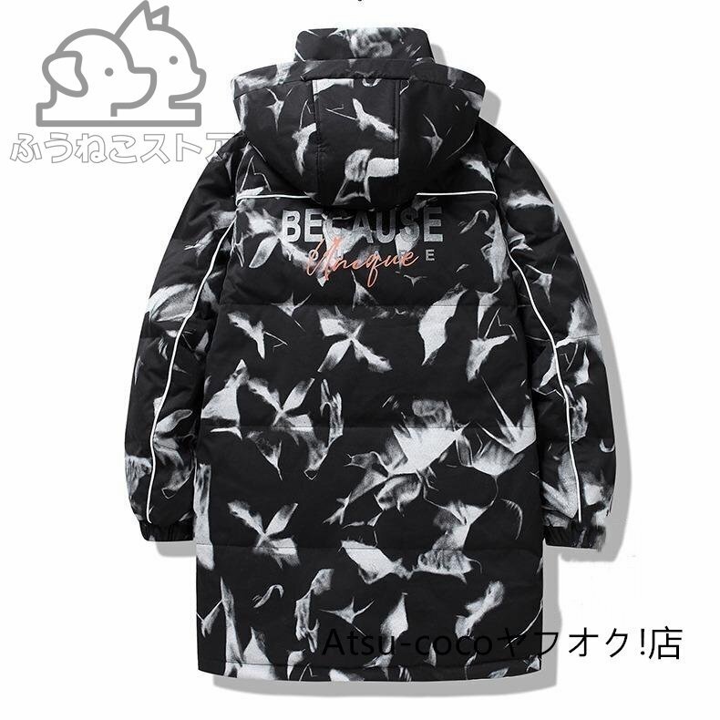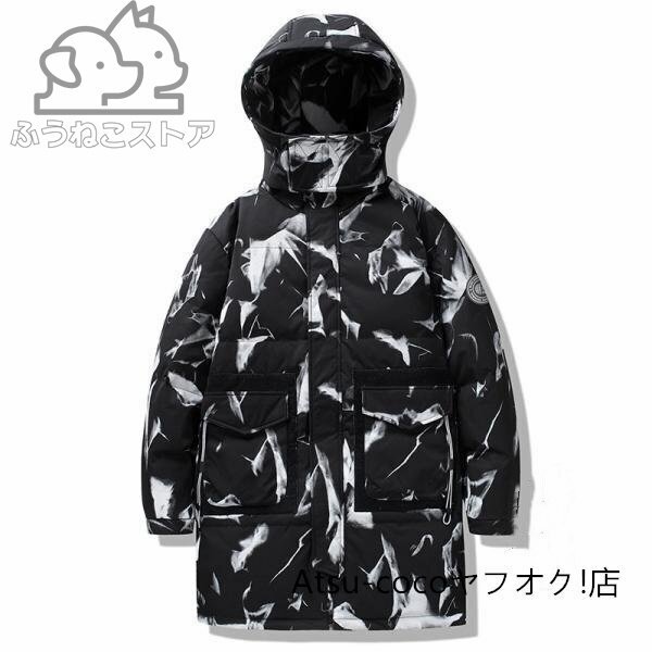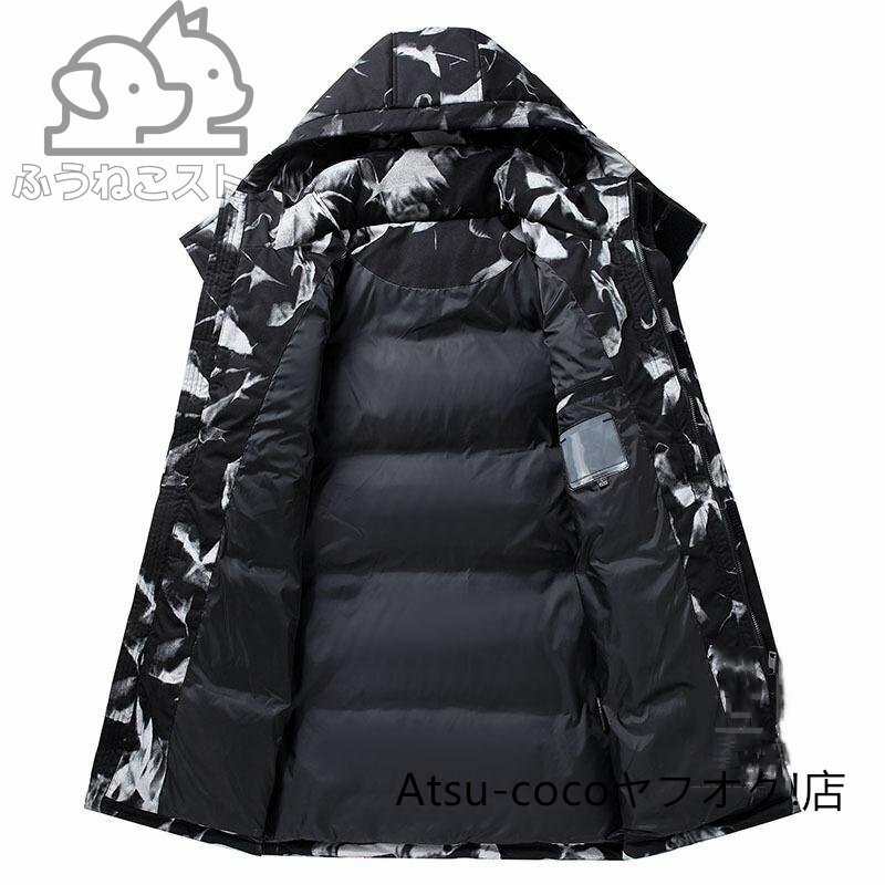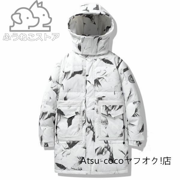 ダウンジャケット メンズ 撥水 フード脱着可 ロング レディース 男女兼用 暖かい 防寒着 総柄 迷彩 アウター M-3XL ホワイト