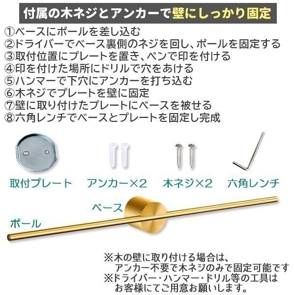 ※木の壁に取り付ける場合は、アンカー不要で木ネジのみで固定可能
