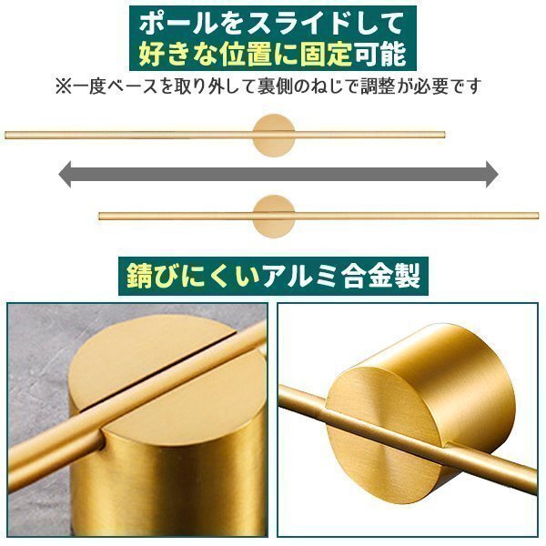 タオル掛け 洗面所 おしゃれ 壁付 タオルハンガー タオルホルダー タオル干し キッチン 洗面所 トイレ モダン 収納 ゴールド×ゴールド