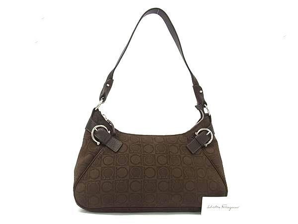 1円 ■美品■ Salvatore Ferragamo フェラガモ ガンチーニ キャンバス×レザー ワンハンドル ハンドバッグ ショルダー ブラウン系 FP4193