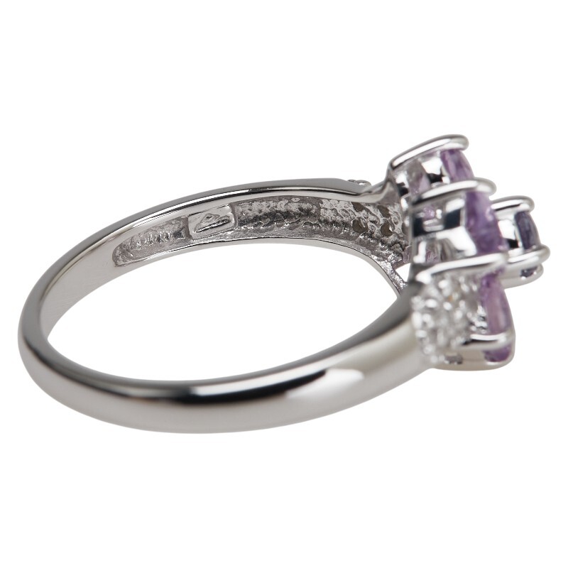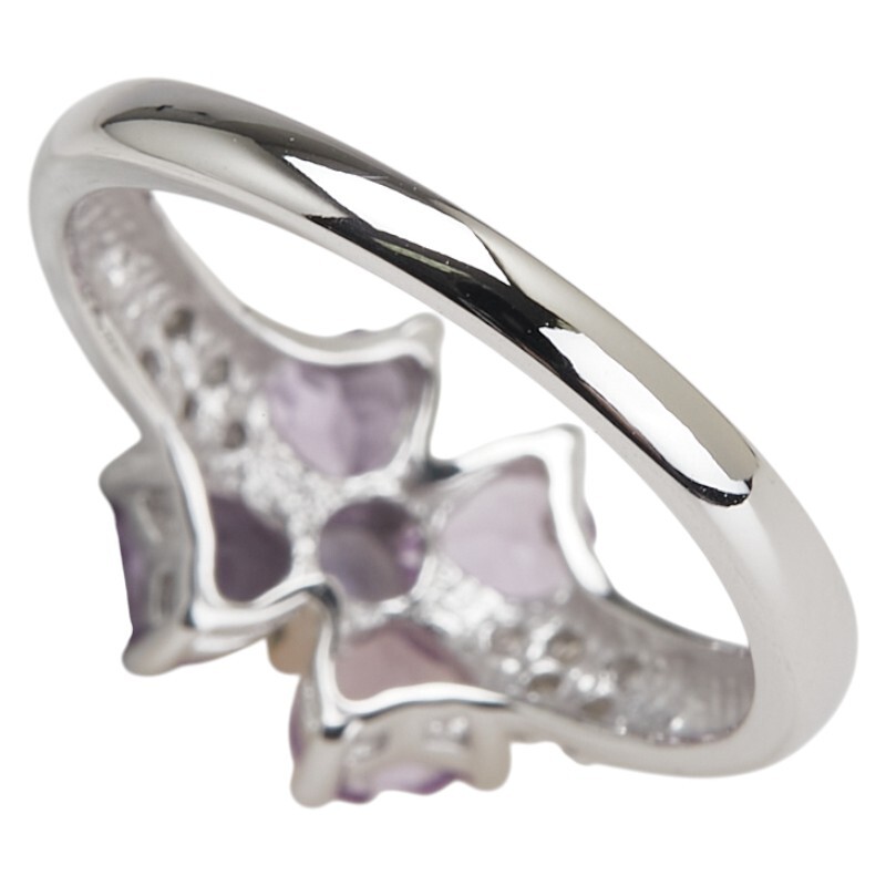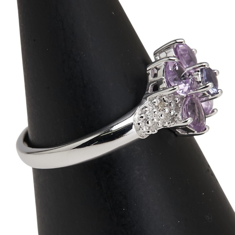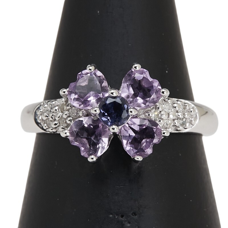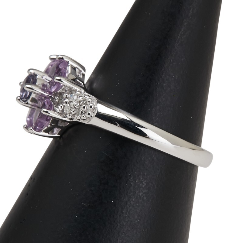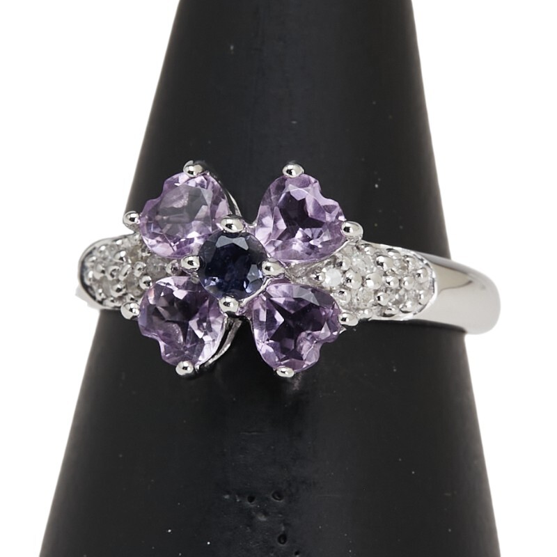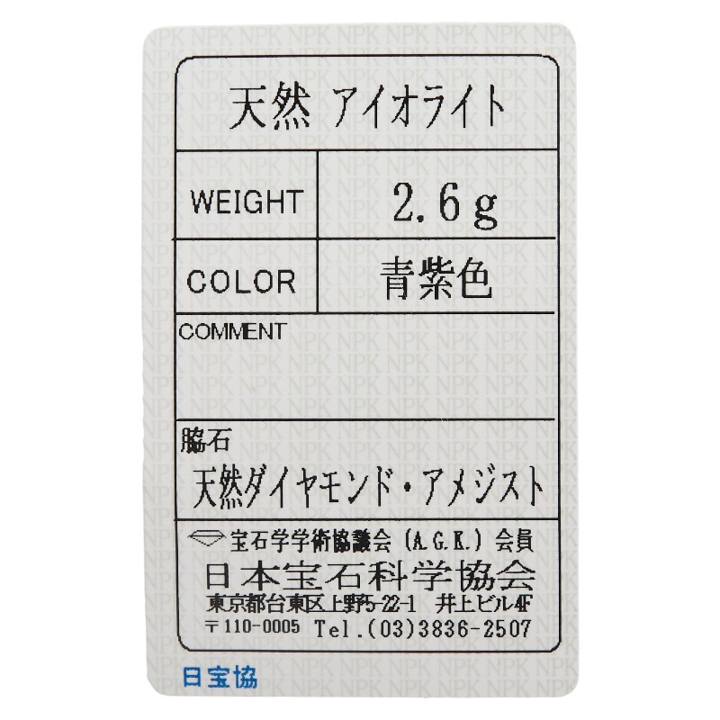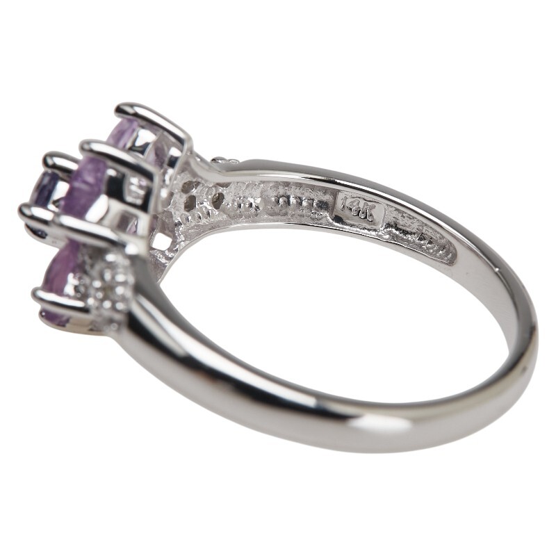 K14WG ホワイトゴールド ダイヤ アイオライト アメジスト 四つ葉 クローバー モチーフ リング 指輪 レディース 11号 中古
