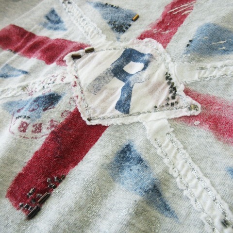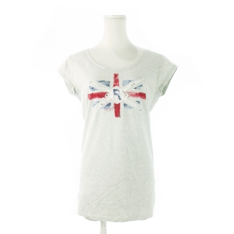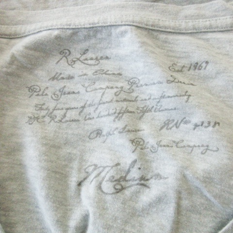 ポロジーンズ ラルフローレン POLO JEANS Tシャツ ラウンドネック 半袖 ユニオンジャック ロゴ プリント ビーズ刺繍 M グレー