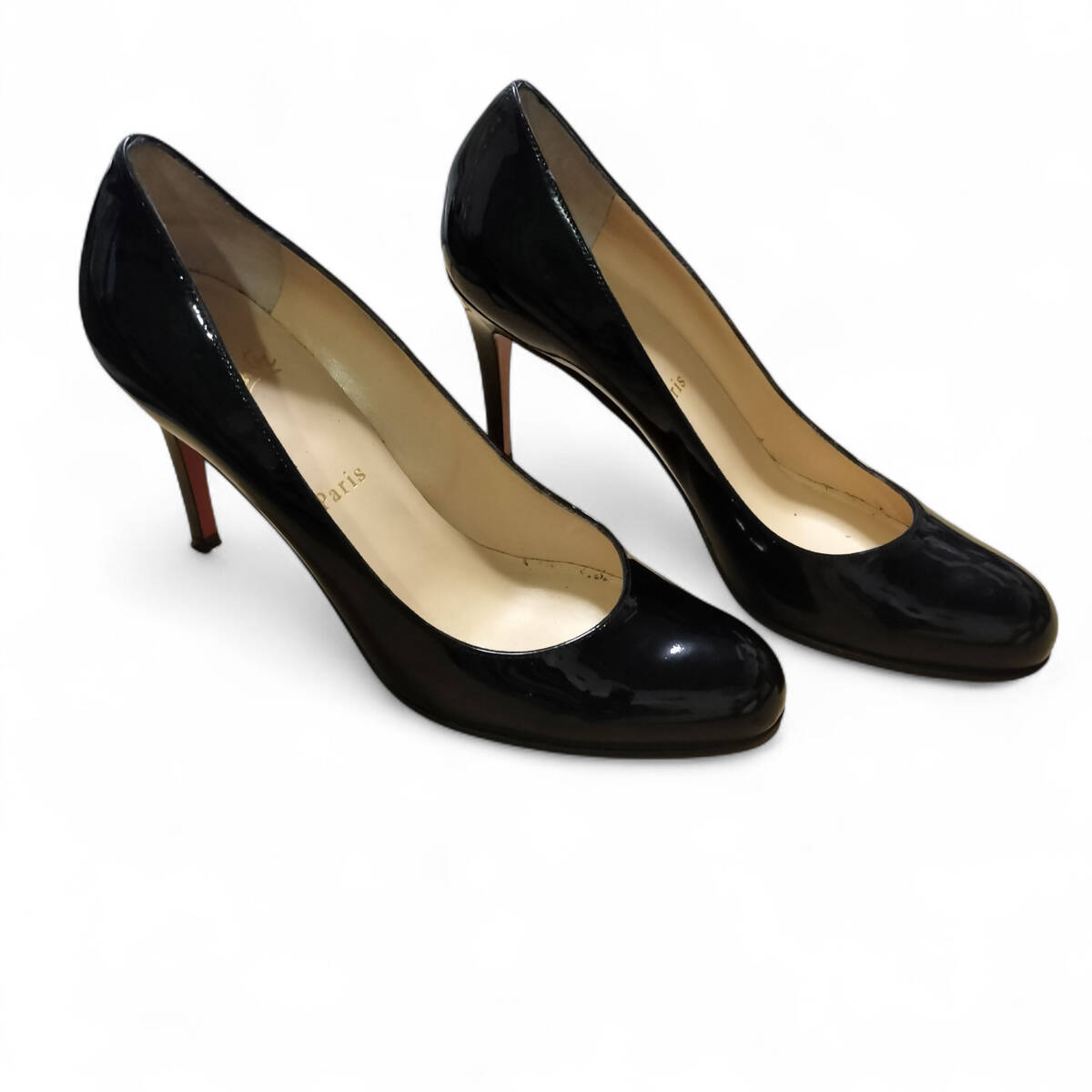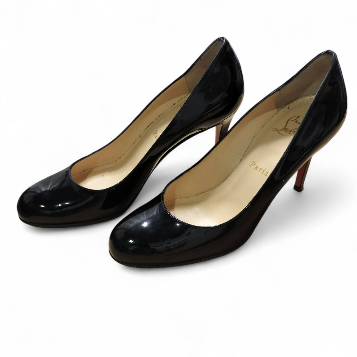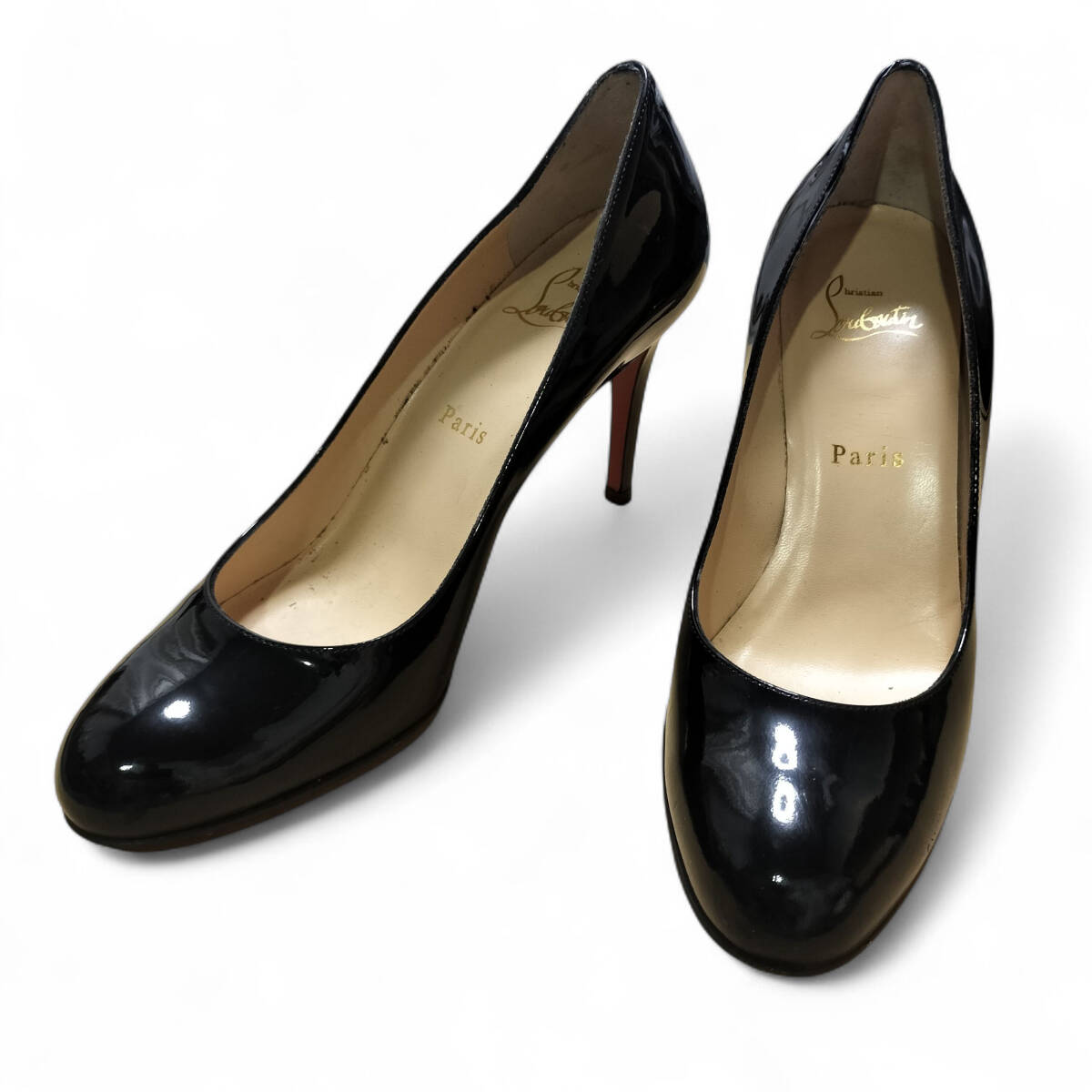 【美品】Christian Louboutin クリスチャンルブタン パンプス エナメル ブラック 黒 38 25cm相当 ヒール レッドソール