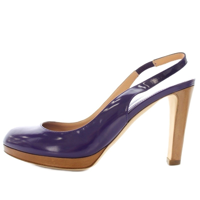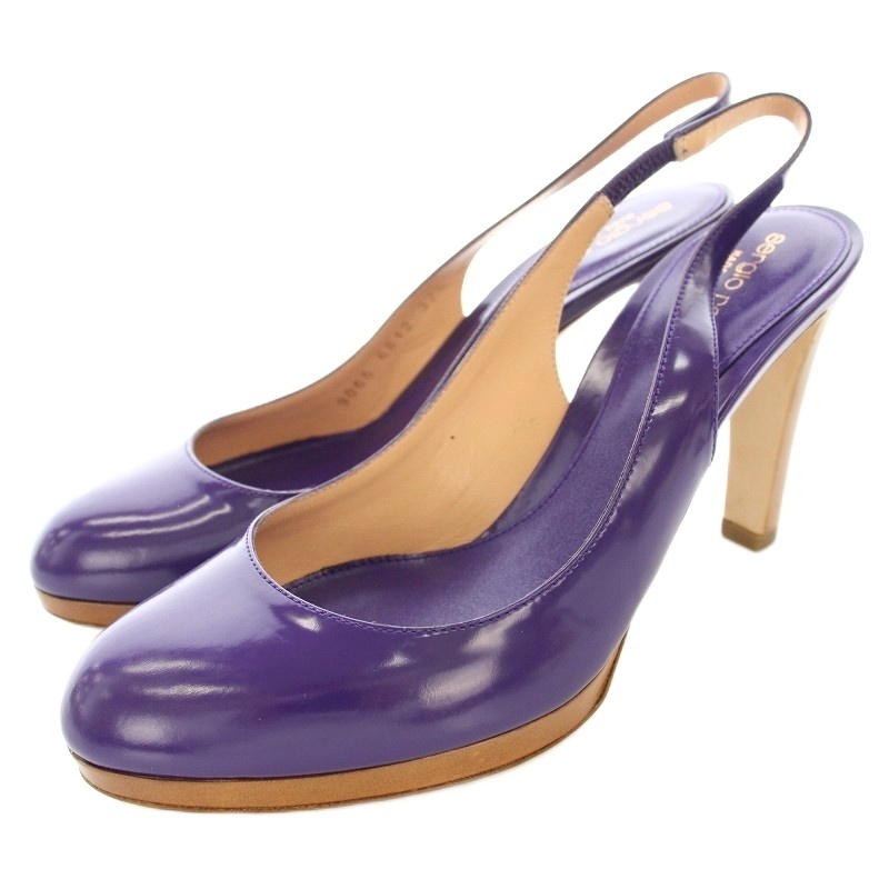セルジオロッシ Sergio rossi パンプス バックストラップ ハイヒール ガラスレザー 37.5 紫 パープル