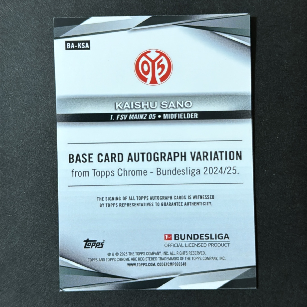 【50枚限定】佐野海舟 Kaishu Sano Topps Chrome Bundesliga 2024-2025 /50 Gold Auto サイン 直筆 Mainz