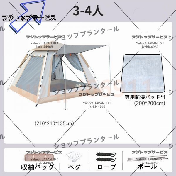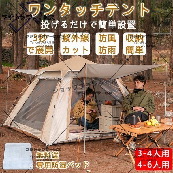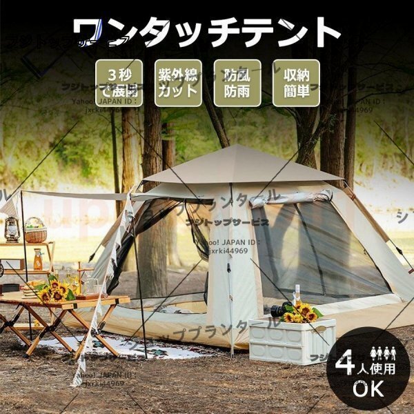 テント ワンタッチテント 大型 ポップアップテント 3-4人用 軽量 両面メッシュ 簡易 紫外線防止 防災 防水 収納袋 ビッグテント アウトドア