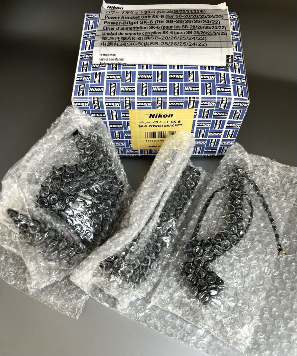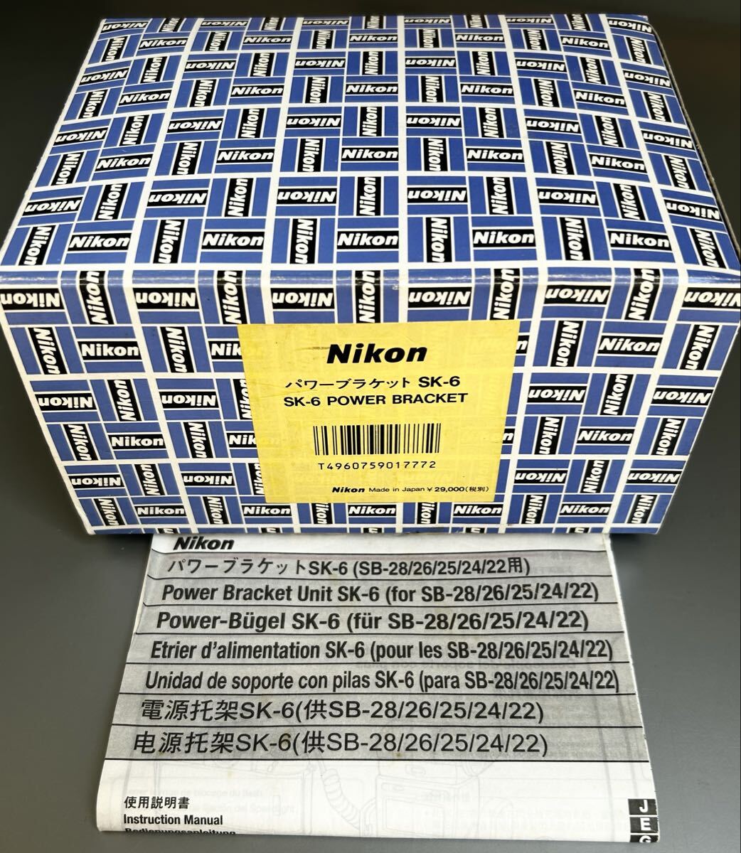 ニコン純正のパワーブラケットNikon SK-6 殆ど未使用の新品同様品セットです! 付属品は一式揃っております。[ブラケット・ AS-16 ホットシューアダプター・使用説明書・元箱] [対応機種]SB-800・SB-80DX・SB-28DX・SB-28・SB-26・SB-25・SB-24・SB-22
