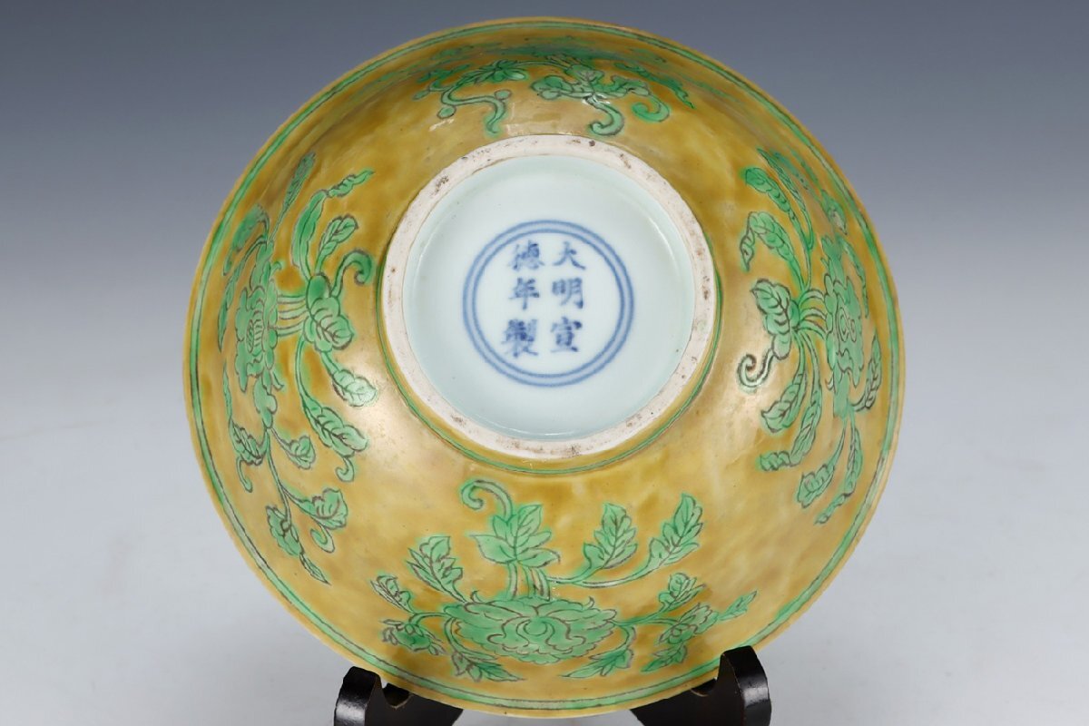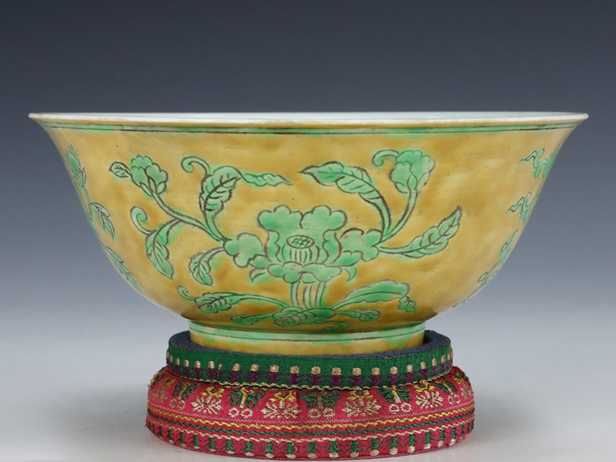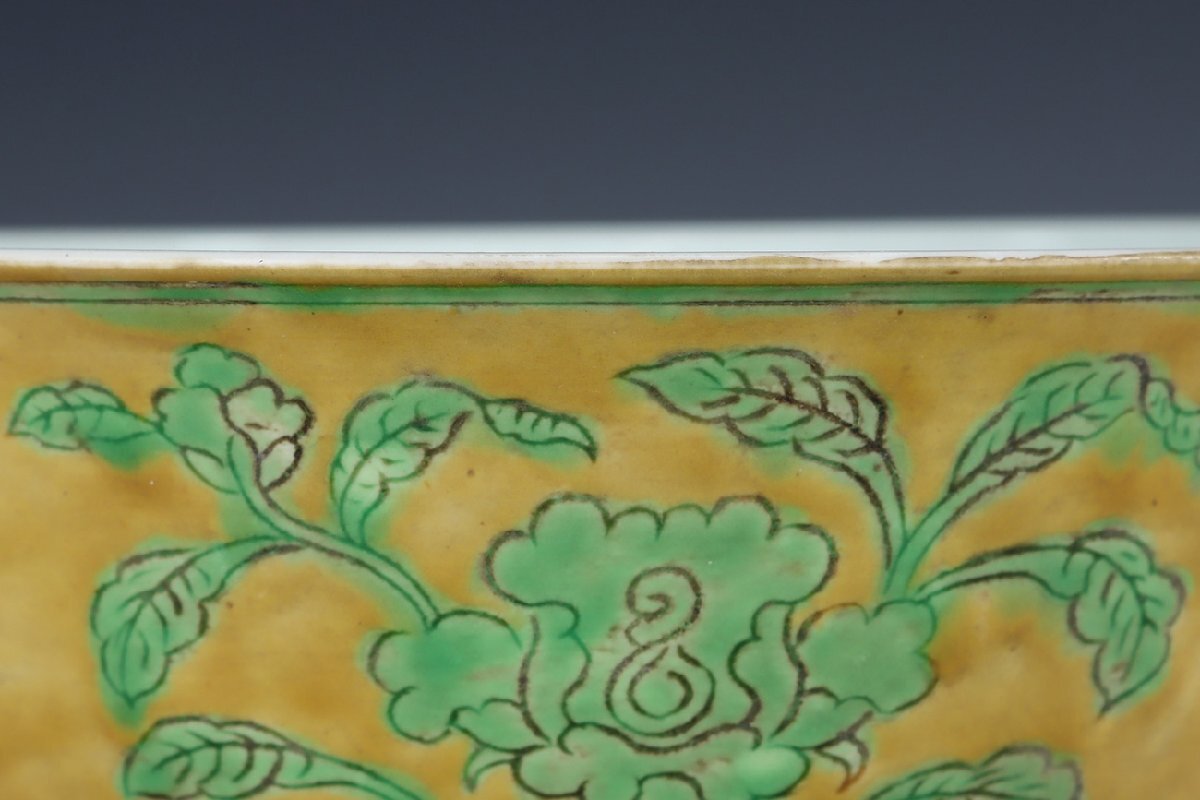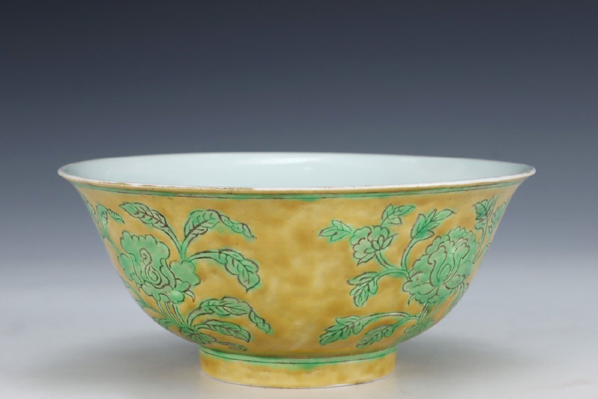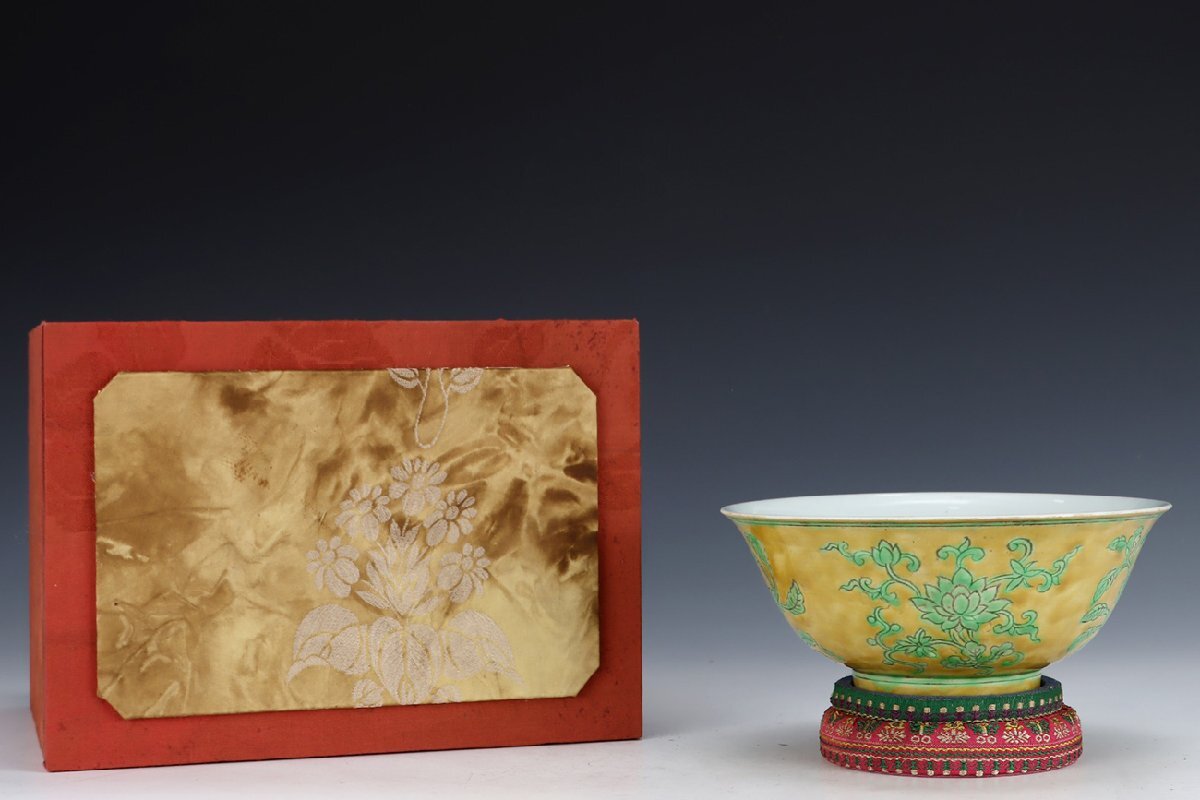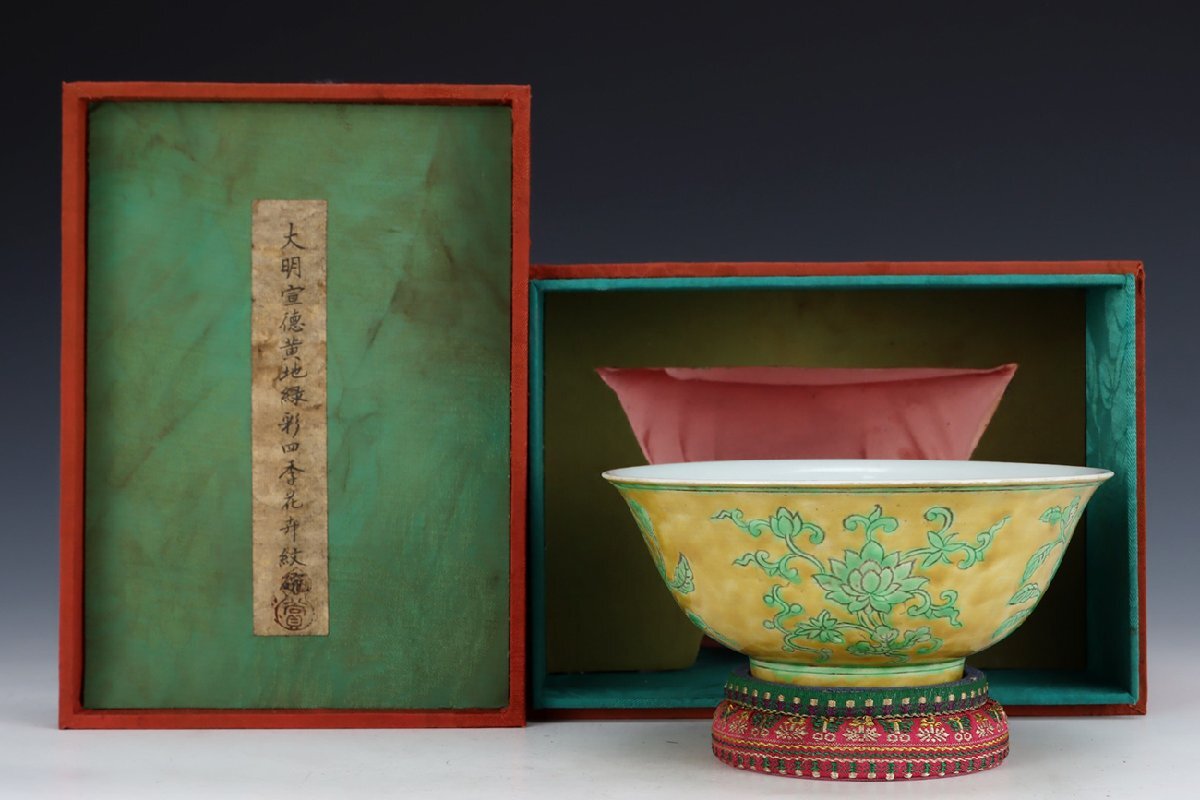 | ◇商品名◇ | ■大成美術■黄地緑釉四季花卉紋碗 明宣徳年製款 箱付き (検)明時代 染付 陶磁器 唐物 中国美術 骨董 古玩 299 | ||