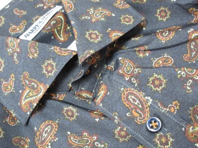 超美品【HARRY&SONS ハリーアンドサンズ】コットン100% ペイズリー柄 長袖シャツ (メンズ) size39 紺系 イタリア製 ◇35MK5871◇