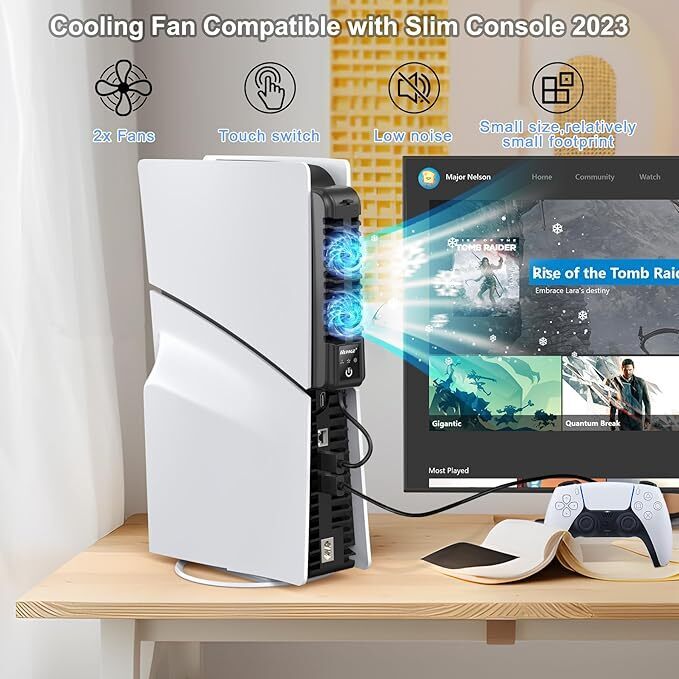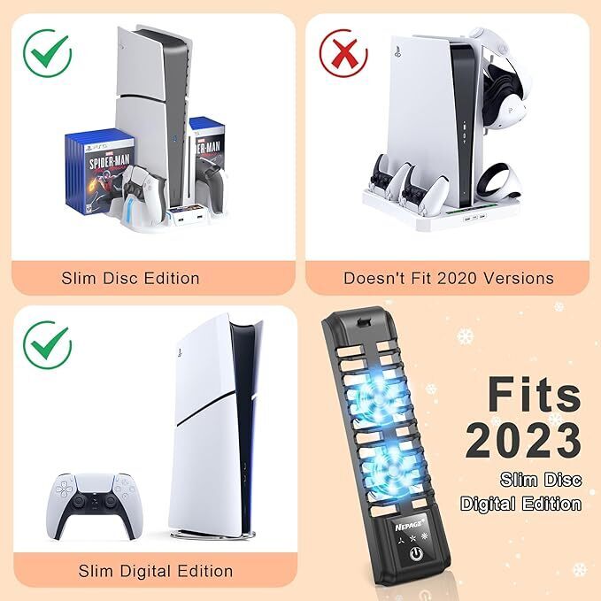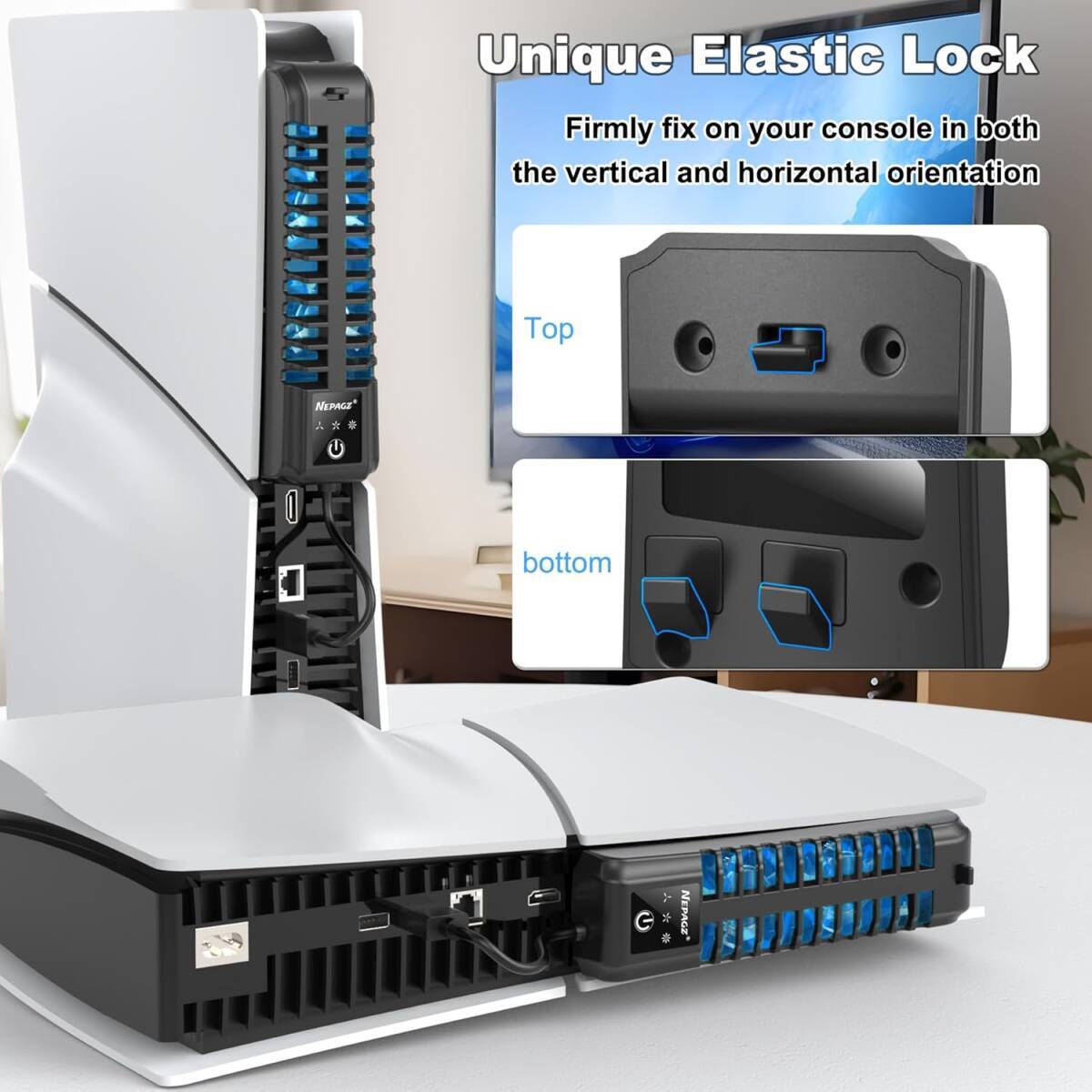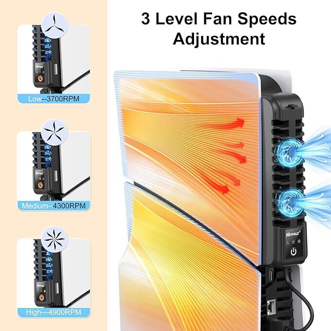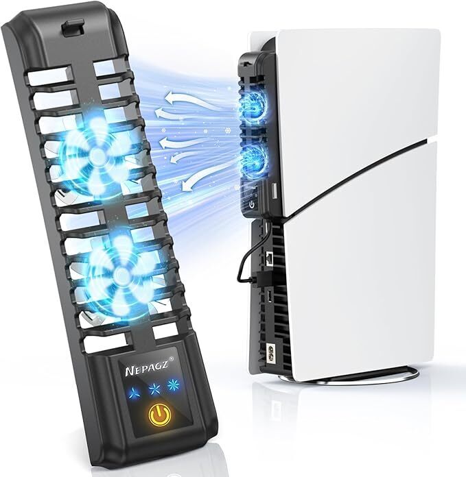 Nepagz 互換性 PS5 Slim 冷却ファン 新型 PS5 モデルと互換性あり、LED ライト付きアップグレードされた静音クーラーファン 3段階風量調整