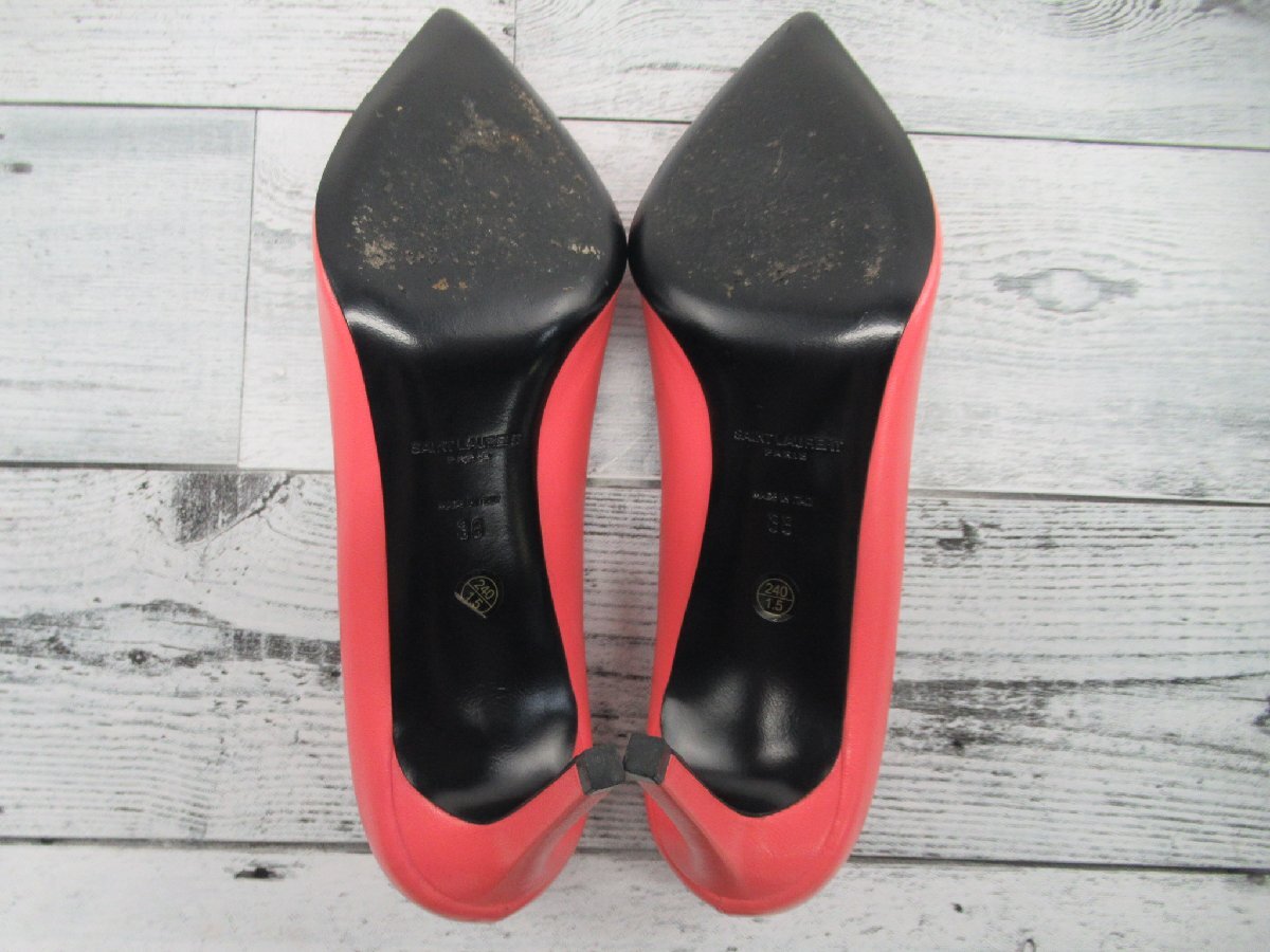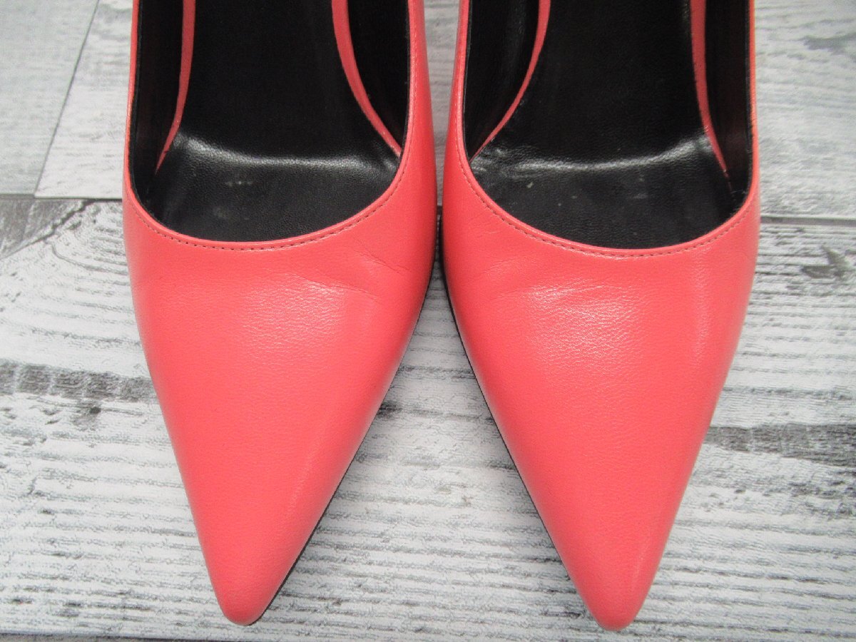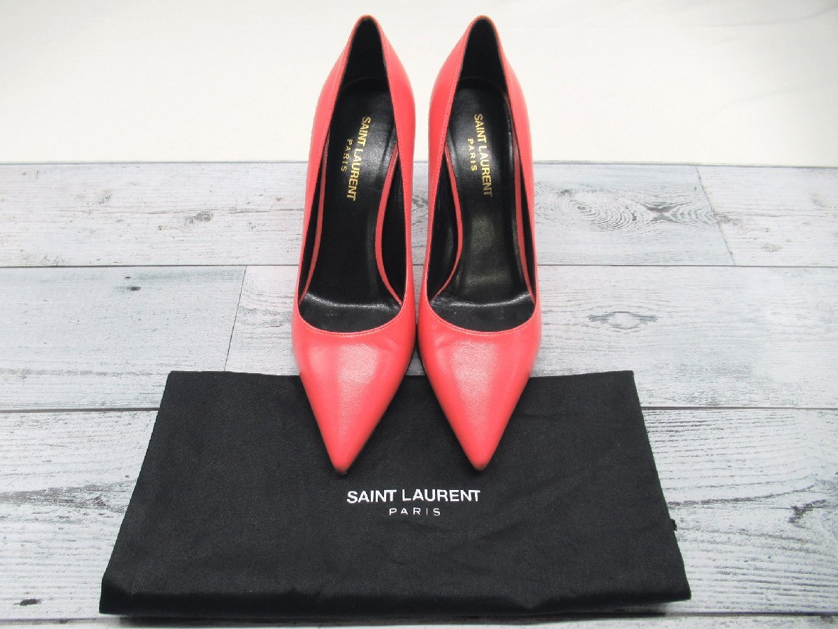 ★【B送900円】2283 Yves Saint Laurent イヴサンローラン ポインテッドトゥパンプス レザー ピンク ピンヒール イタリア製 38
