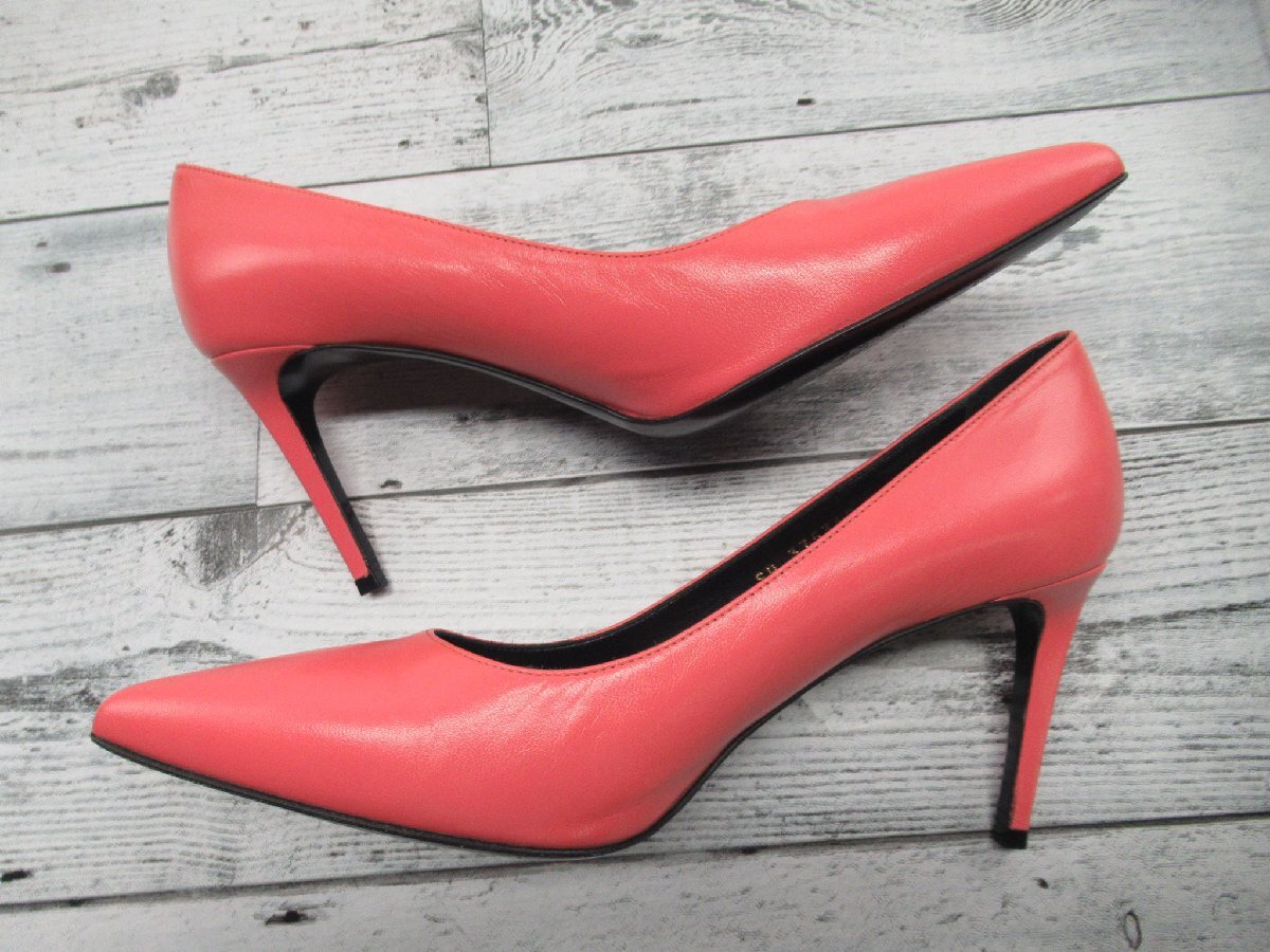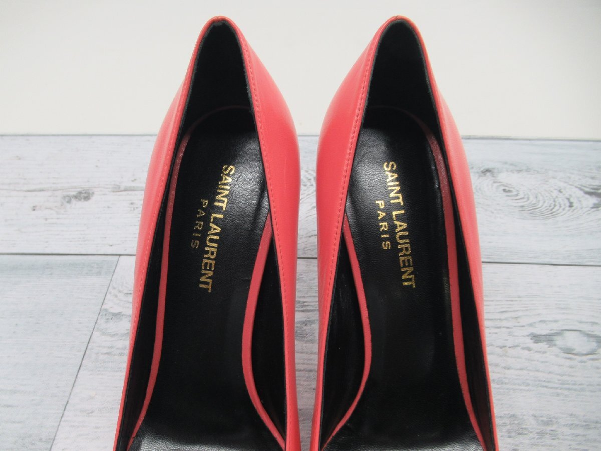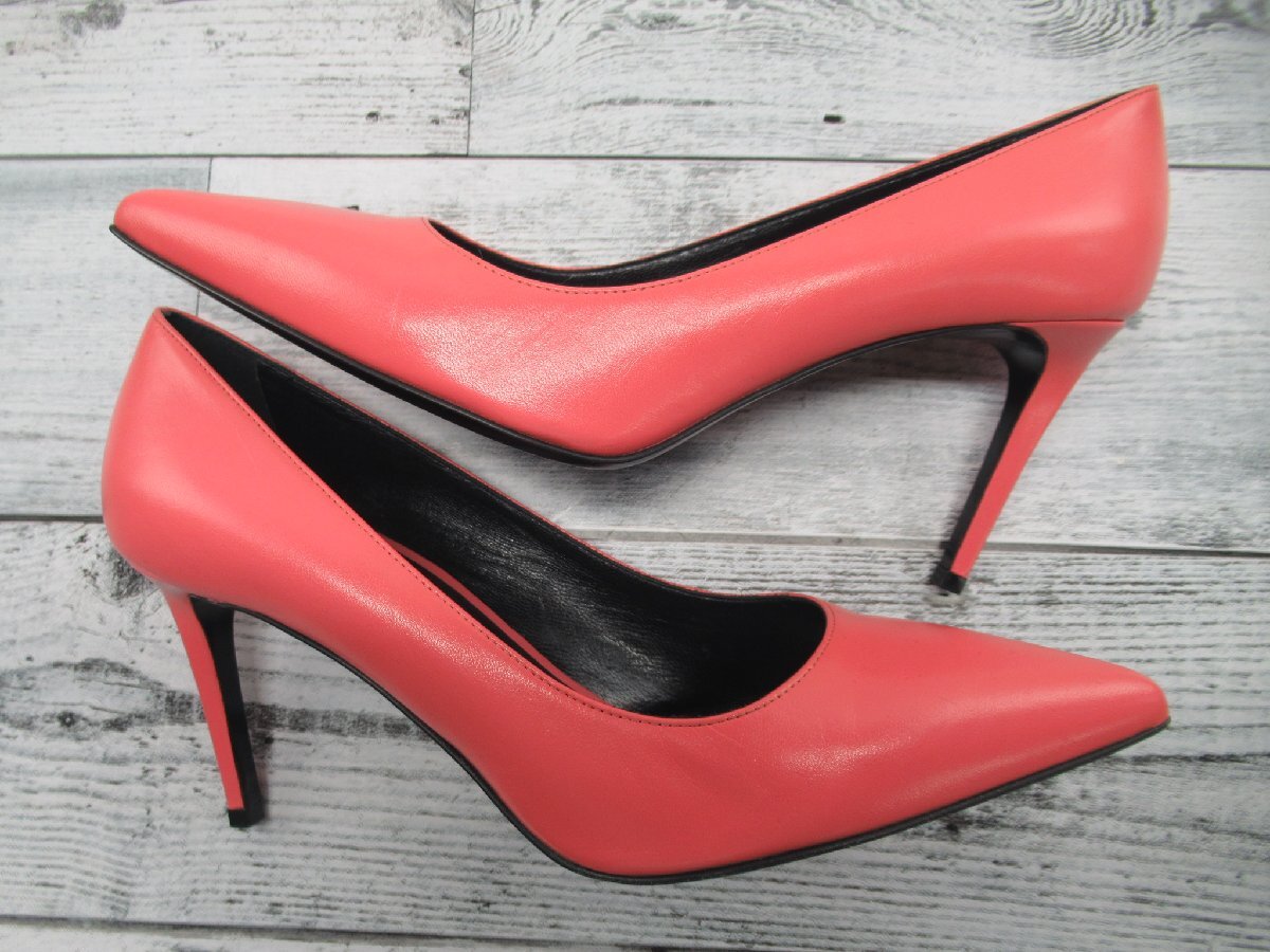 ★【B送900円】2283 Yves Saint Laurent イヴサンローラン ポインテッドトゥパンプス レザー ピンク ピンヒール イタリア製 38