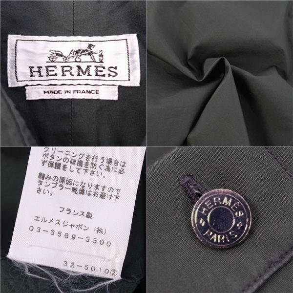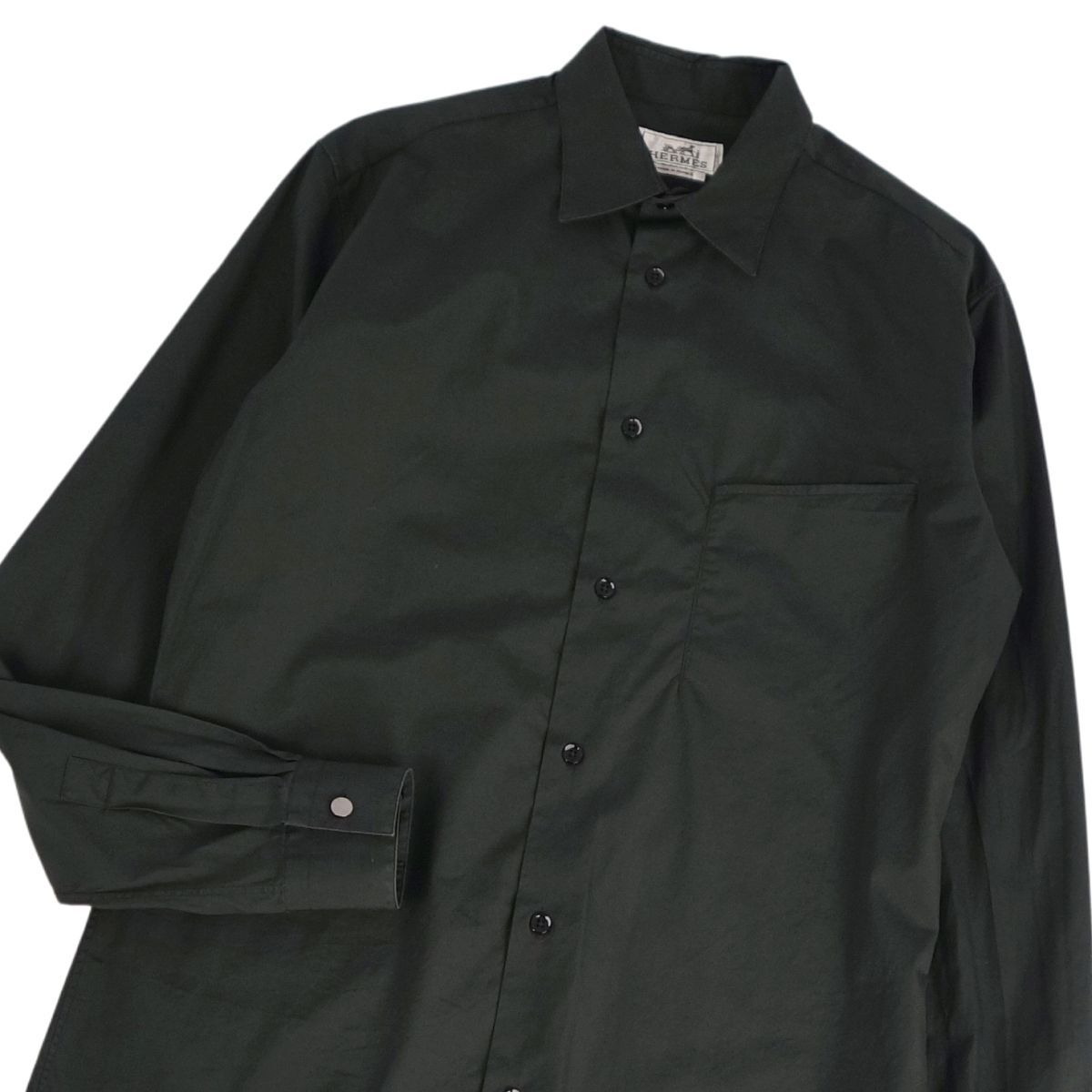 | 美品 エルメス HERMES シャツ ロングスリーブ 長袖 セリエボタン コットン トップス メンズ 39(15.5) カーキグリーン |