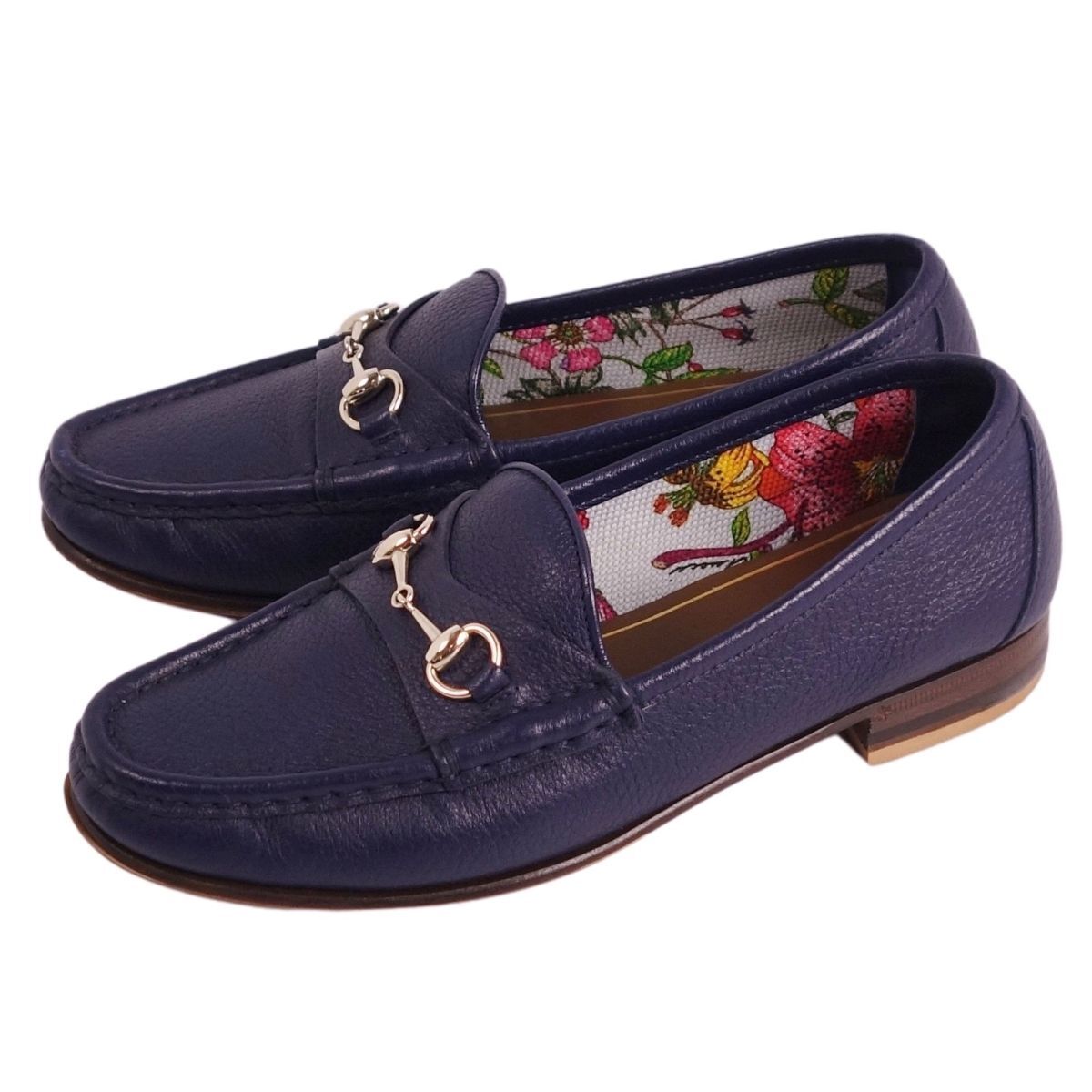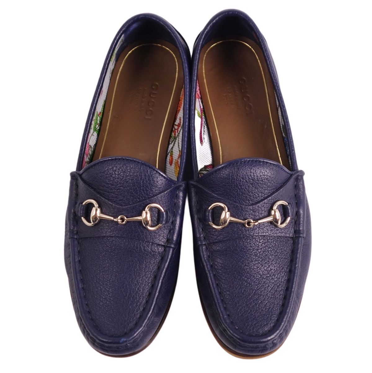 | 美品 グッチ GUCCI ローファー モカシン ホースビット カーフレザー シューズ 靴 レディース 35(22cm相当) ネイビー |