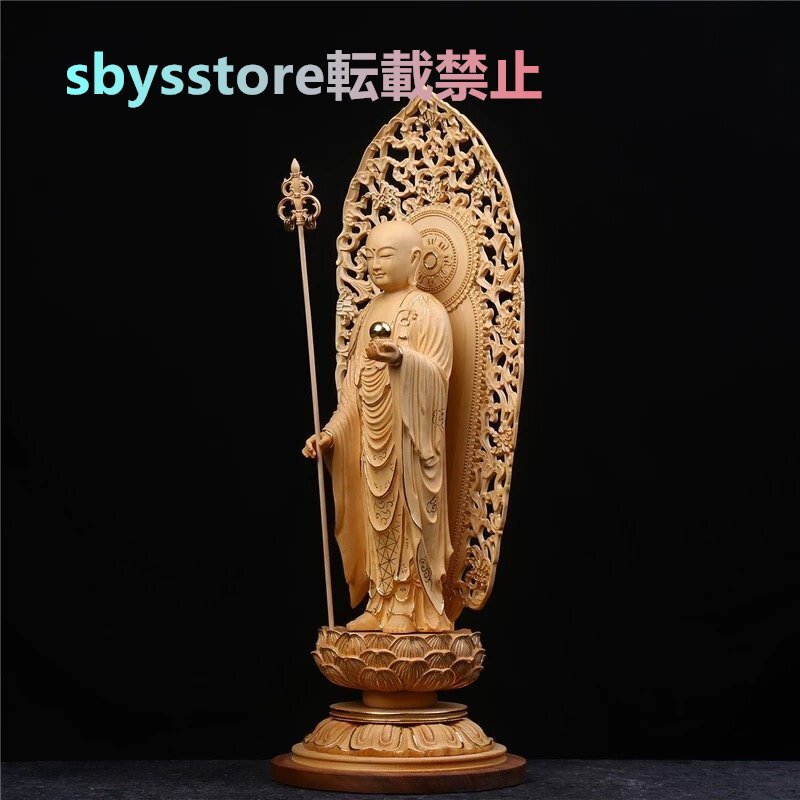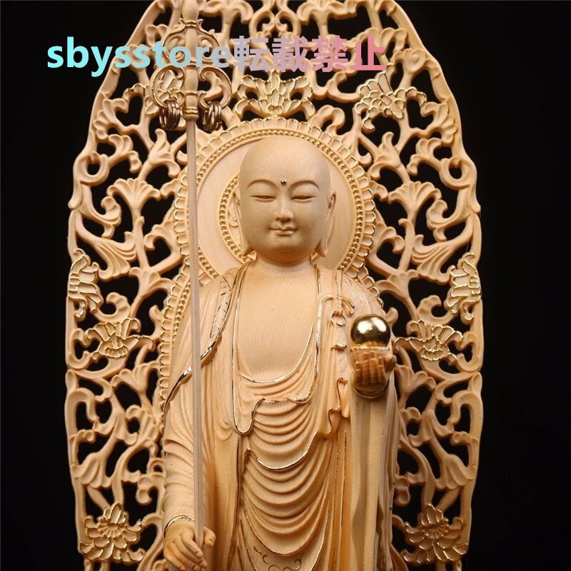 大型高46cm 仏教工芸品 木彫仏教 極上品 精密彫刻 切り金 本金 仏師で仕上げ品 地蔵菩薩 立像