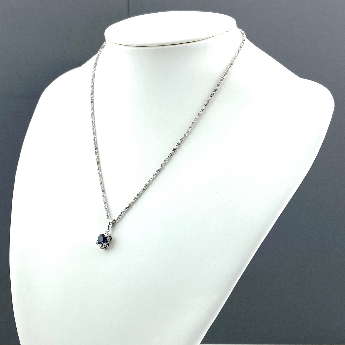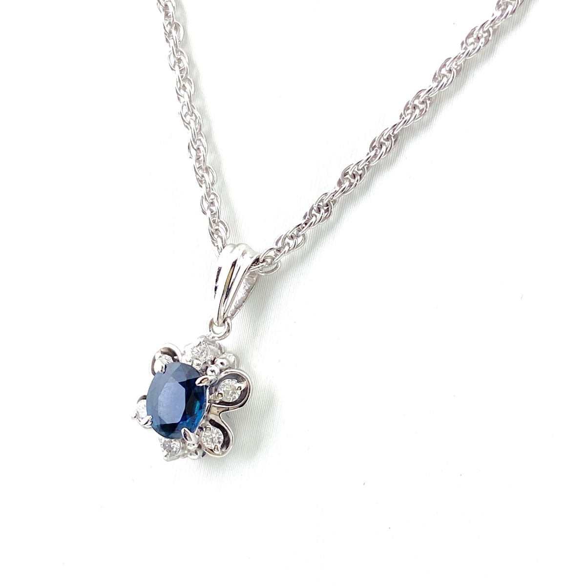 トップ:Pt900、チェーン:Pt850 サファイア:0.70ct、メレダイヤ:0.13ct 中古品の為、若干のキズや汚れがございます。 |