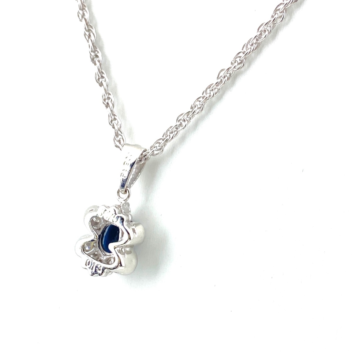 フラワーモチーフ デザインネックレス プラチナ ペンダント メレダイヤ ダイヤモンド 花 ネックレス Pt900 Pt850 サファイア レディース 【中古】 |