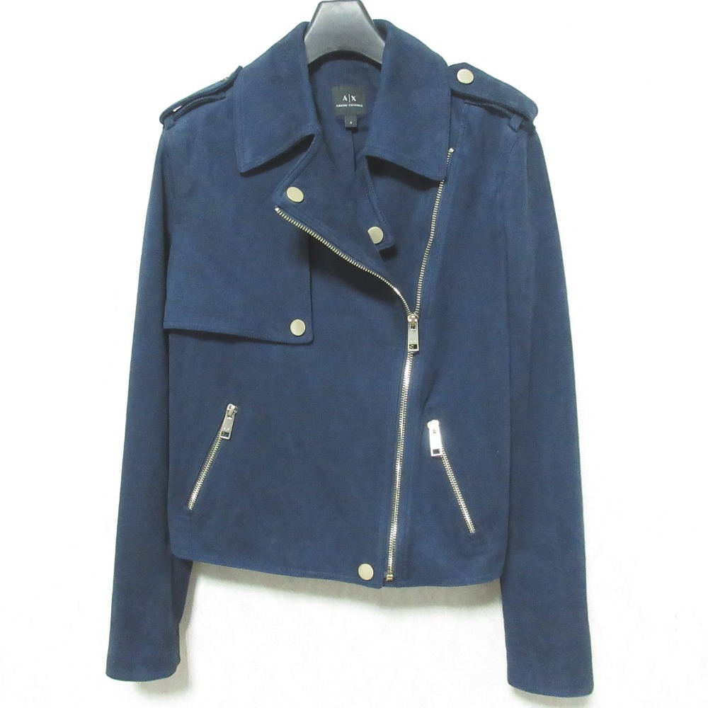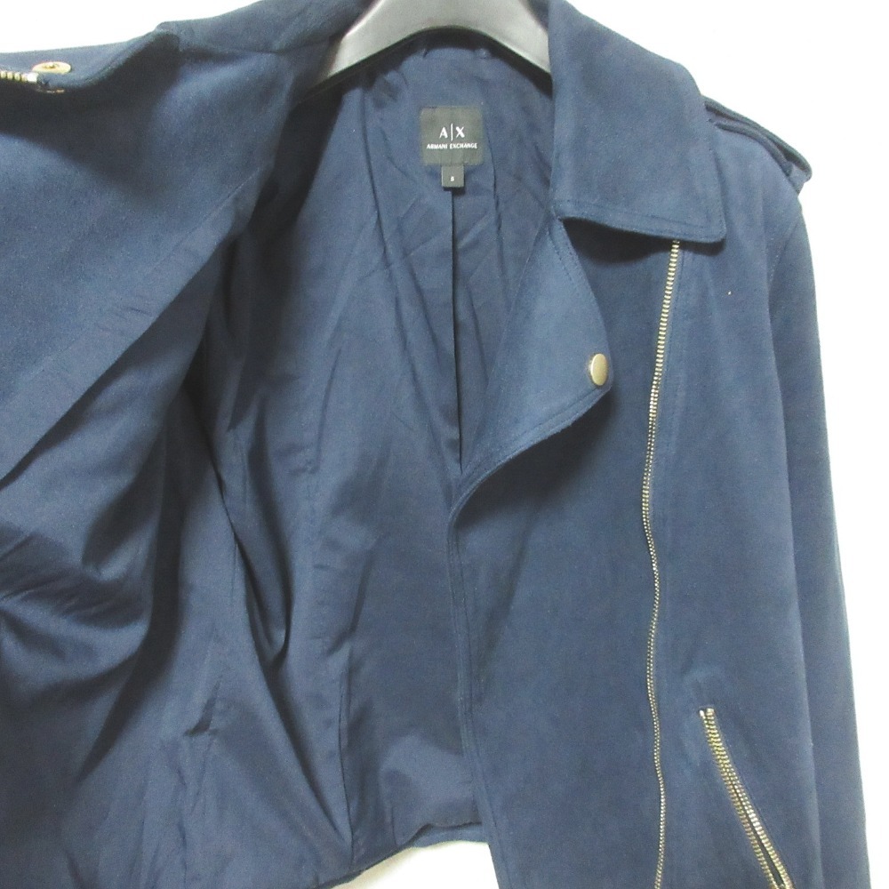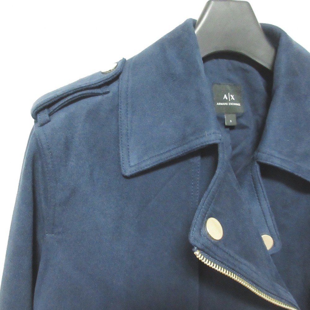 美品 ARMANI EXCHANGE アルマーニエクスチェンジ エコスエード ライダースジャケット ブルゾン 6GYB18 YNHMZ S ネイビー