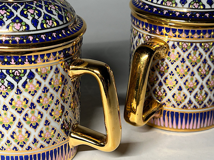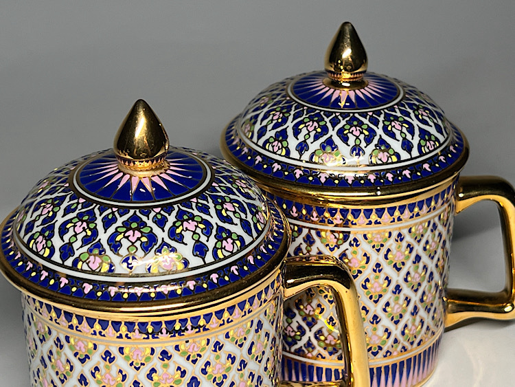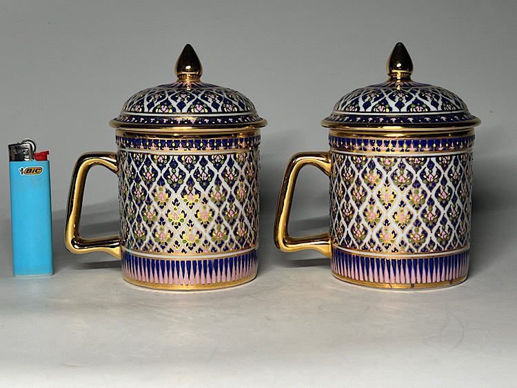 タイ陶磁 ハンドペイント 蓋付マグカップ 2客 ◆商品詳細 寸法(約):13x10.5x6.9(高×幅×口径cm) ※寸法に若干の誤差が生じる場合もございます。 少し汚れがありますので、 ご承知の上入札お願いします。 状態等画像にてご確認の上ご入札よろしくお願いいたします。 ◆発送先等のご連絡とお支払いについて ※発送先等のご連絡 落札時から48時間以内にお願い致します。 ※お支払 かんたん決済の期限内にお願い致します。 複数点落札時にまとめて取引の場合(72時間内)に、 まとめて取引の取引手順(落札者方の操作)を参考にお願い致します。 梱包したサイズを測って、地方によって送料を決めますので、よろしくお願いします。 ◆掲載画像について ※画像は現物を撮影しておりますが、照度、遮光、モニターによっては実物と 色目が異なって見えることがありますのでご注意ください。掲載画像では確認 できない傷や汚れがある可能性もございます、あくまで 中古品であるということをご承知の上、御入札をお願い致します。 ◆補償について 商品到着後はすぐに状態の確認をお願い致します。 商品の破損等がございまし たら、箱や梱包材など全てそのままの状態で保存し、お早めにご連絡ください。 (到着日から一週間以上経過、梱包材の廃棄済み等の場合、保証は致しかねます のでご注意ください。) ◆返品について 思っていたイメージと違う、などのお客様主観による返品はお受けできません ので、予めご了承ください。ノークレーム、ノーリターンでお願いします。届 いた商品が商品説明と著しく異なる場合(寸法、キズ記載ミスなど)のみ承り ます。早めにご連絡ください。 ◆注意事項 当方の希望価格と隔たりがある場合は、終了前にやむなく取下げさせて頂く場 合がございます。 ※商品ご落札翌日から4日間以内にご連絡が取れない場合は、入札取消の処置を 取らさせていただく場合がございます。 ※評価の悪い方は取り消す場合がございます。 ※原則として当方の不備以外のキャンセル・返品・返金は受け付けておりません。 以上の点を予めご了承頂いた上で、入札・落札お願い致します。 ◆発送方法 ▼ゆうパック(補償あり/追跡あり) 梱包後のサイズ:~約60cm ※送料全国一律880円 (但し北海道、沖縄、離島は+500円いただきます。) 発送元は静岡県となります。 ( 商品の組み合わせによっては同梱をお断りさせていただく場合があります。) ※大型商品について 郵便局の規定を超える商品の場合は、佐川急便またはヤマトでの発送となります。 |