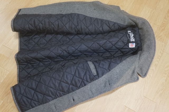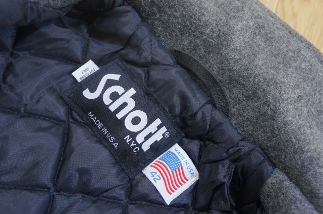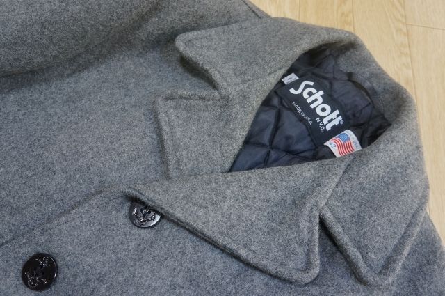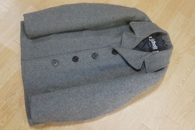 J507 即決 良品 USA製 Schott ショット ウールメルトン シングル Pコート ピーコート 裏地キルティング中綿 42 グレー 暗め系