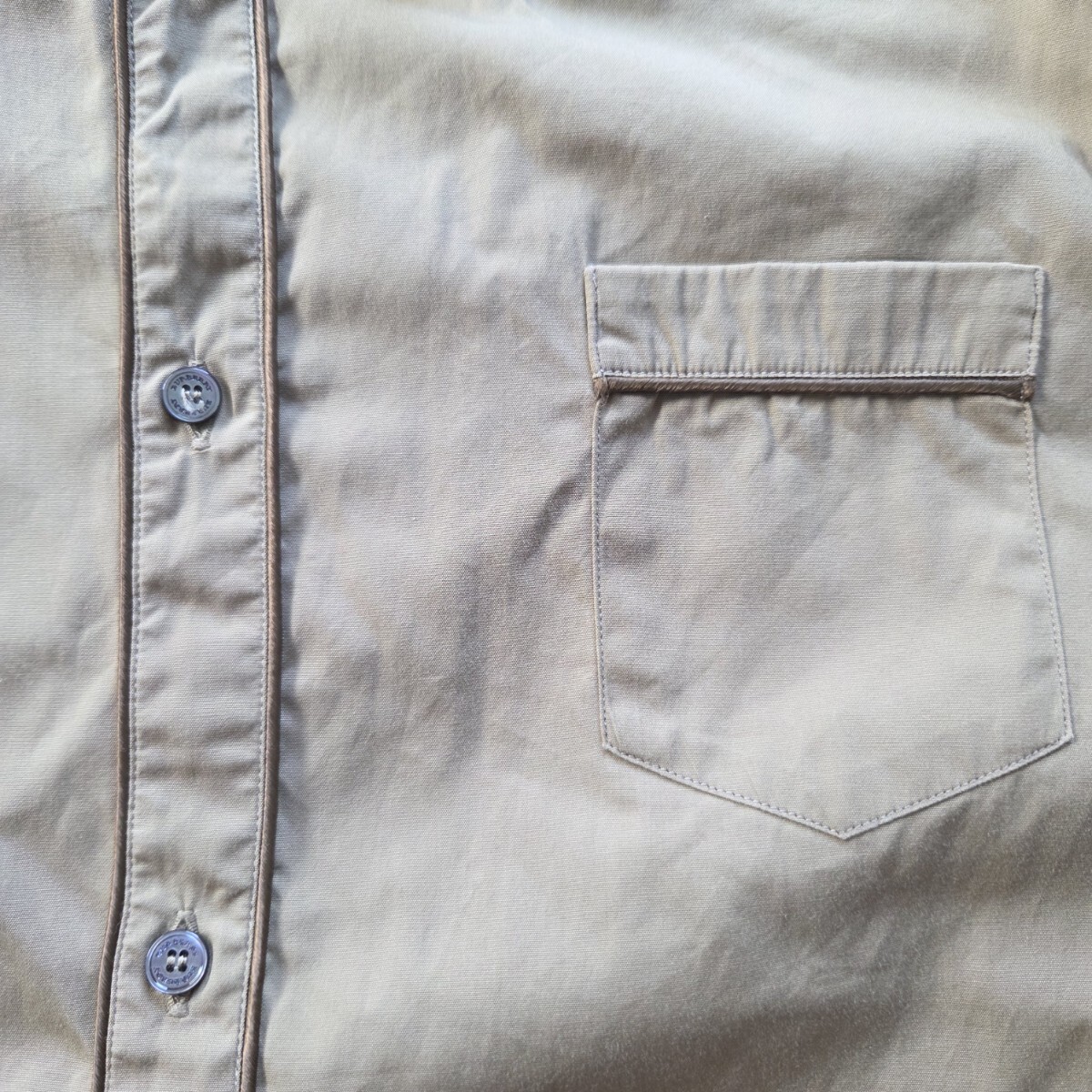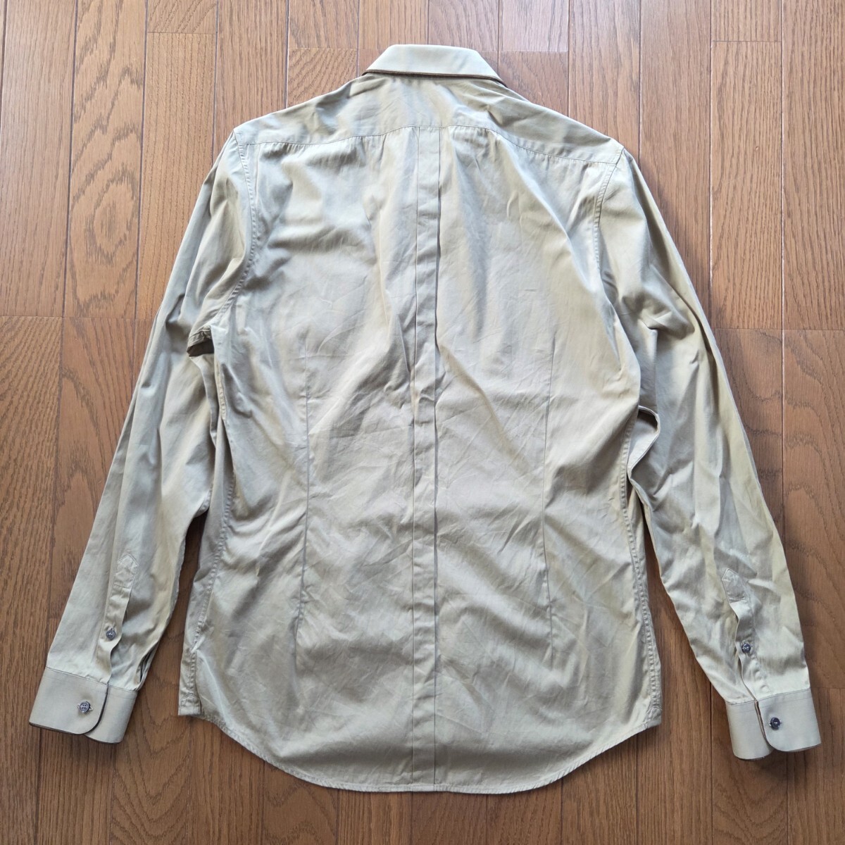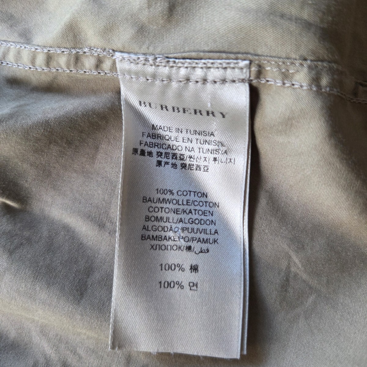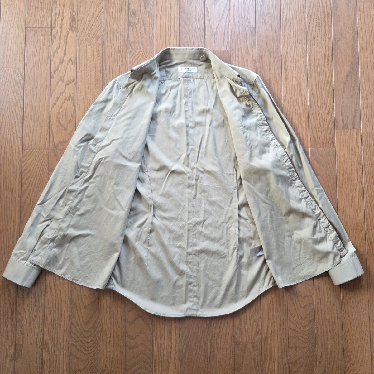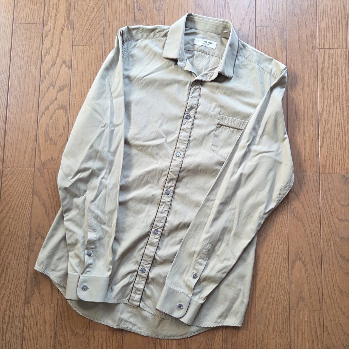 バーバリーロンドンの、微光沢のカーキの長袖シャツです。