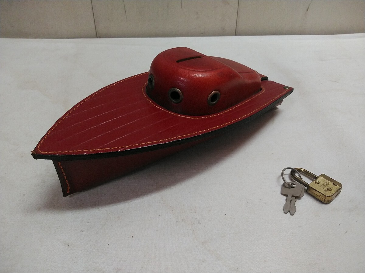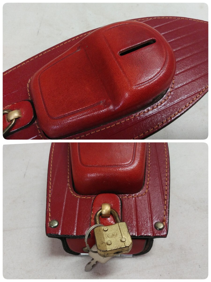 レターパックP/革製 レザー 貯金箱【 23×10×75cm 】未使用在庫品 カギ付