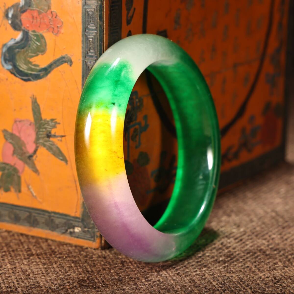 『清・翡翠製・細密彫・腕輪・彩繪・漆器箱付・根付・裝身具』極細工 置物 古賞物 中国古玩 中国古美術