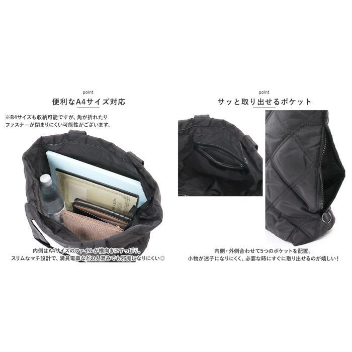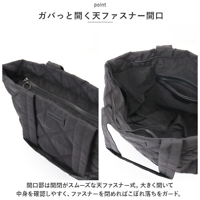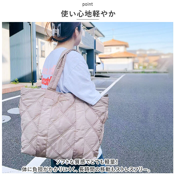 商品説明 | ・・軽量なのにたっぷり入る!色んなシーンで大活躍のバッグが登場。 ・【使い心地軽やか】 ・ソフトな質感でとても軽量!体に負担がかかりにくく、長時間の移動もストレスフリー。 ・【うれしい大きめサイズ】 ・お出かけに必要な荷物がひとまとめ◎通勤・通学からお出かけ、レジャーや旅行まで重宝するアイテム。 ・【ガバっと開く天ファスナー開口】 ・開口部は開閉がスムーズな天ファスナー式。大きく開いて中身を確認しやすく、ファスナーを閉めればこぼれ落ちをガード。 ・【便利なA4サイズ対応】 ・内側はA4サイズのファイルが横向きにすっぽり。スリムなマチ設計で、満員電車などの人混みでも邪魔になりにくいのがポイント。(※B4サイズも収納可能ですが、角が折れたりファスナーが閉まりにくい可能性がございます。) ・【サッと取り出せるポケット】 ・内側・外側合わせて5つのポケットを配置。小物が迷子になりにくく、必要な時にすぐに取り出せるのが嬉しい! ・【肩掛けがスムーズ】 ・ハンドルは肩に掛けやすい長さに設計。ズレや肩落ちをガードする滑り止め付き。 ・【選べるカラー】 ・コーデを選ばず使える、落ち着きのあるカラーをラインナップ。大人女子にぴったり♪ ・【ポケット仕様】 ・内側:ファスナーポケット×1、オープンポケット×2 ・サイド:ファスナーポケット×2 |