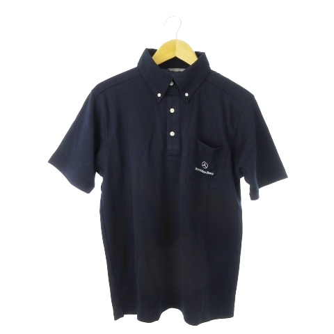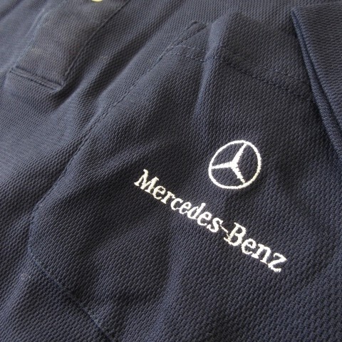 未使用品 メルセデス ベンツ Mercedes Benz ポロシャツ ボタンダウン 半袖 メッシュ ロゴ刺繍 紺 ネイビー /CK3 メンズ