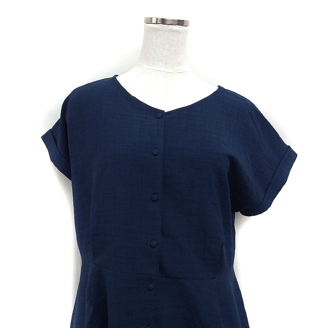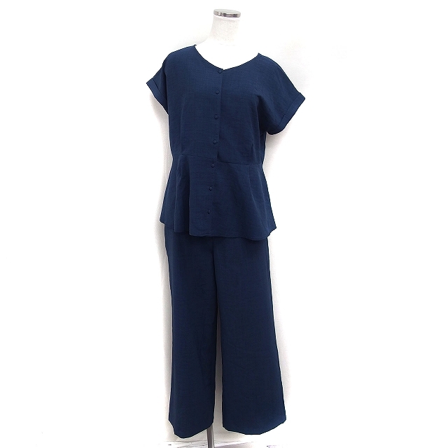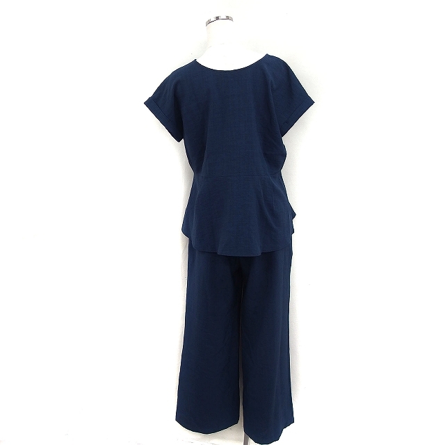 アー・ヴェ・ヴェ ミッシェルクラン a.v.v セットアップ リネンライク 2WAY ペプラム ブラウス ワイドパンツ L ネイビー /FT8 レディース