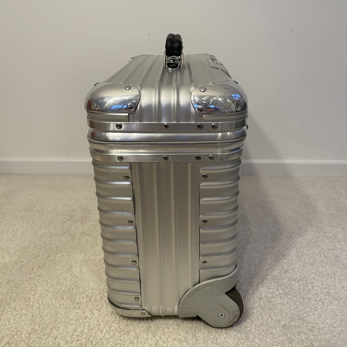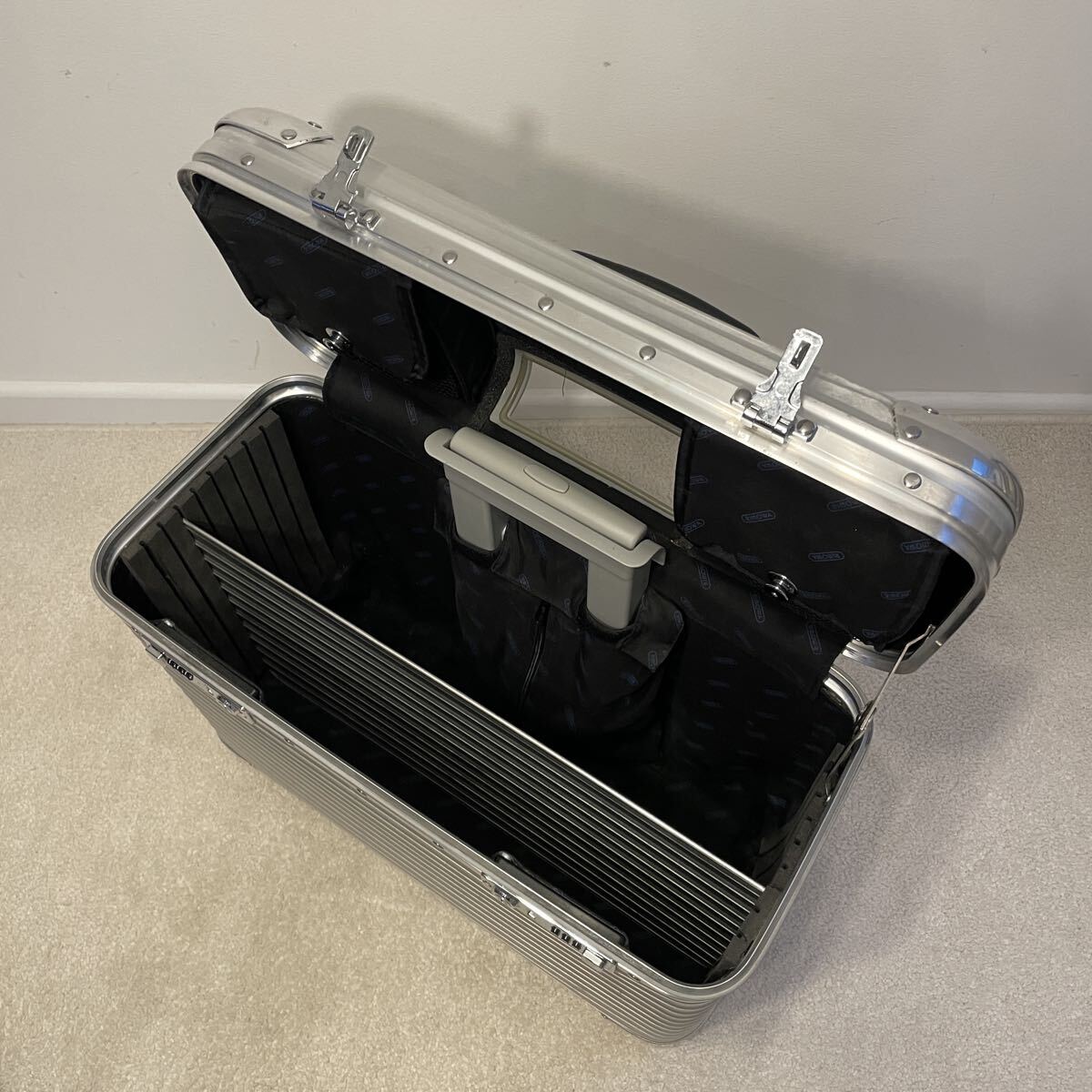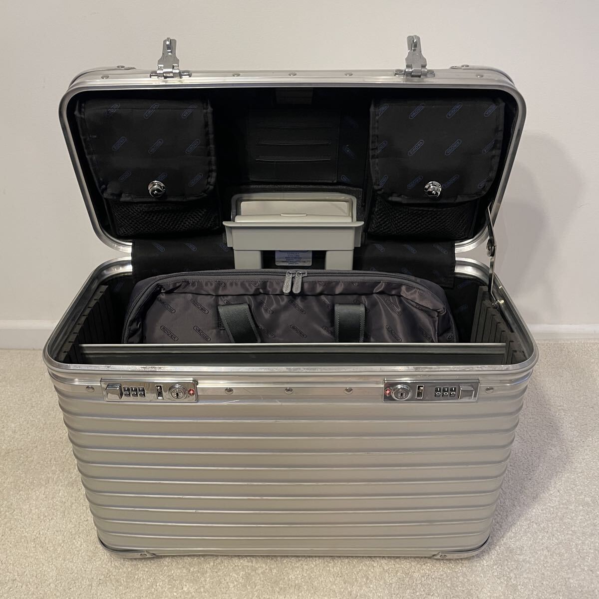 外装はRIMOWAのクラシックをベースにした構造で、レザーハンドルやTSAロックはビジネスユースを意識した専門設計となっており、コーナープレートはクラシックフライトにも採用されている鏡面仕上げのアルミニウム仕様です。