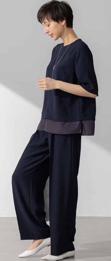 □■23区 ストレッチジョーゼットシアーコンビカットソー ネイビー■□