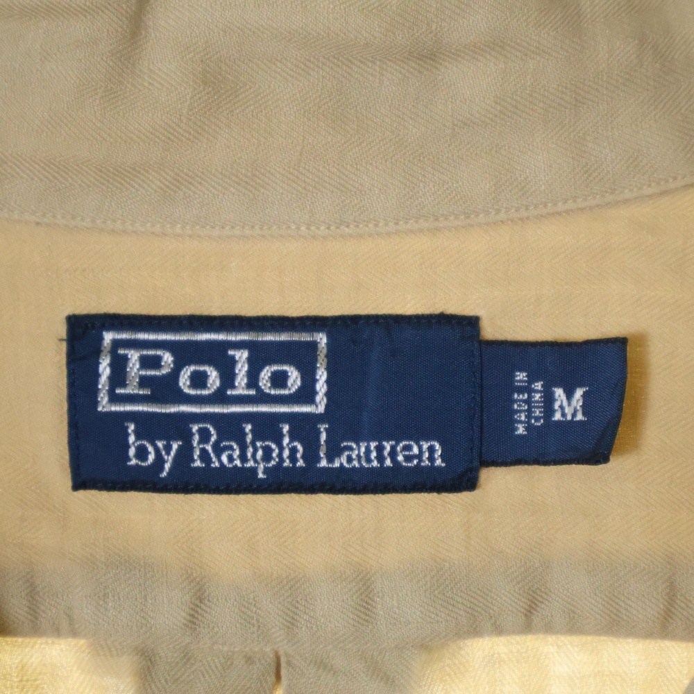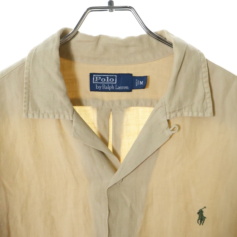 ポロラルフローレン 90S クラッシック フィット オープンカラー リネン ロゴ エンブロイダリー 半袖シャツ ベージュ
