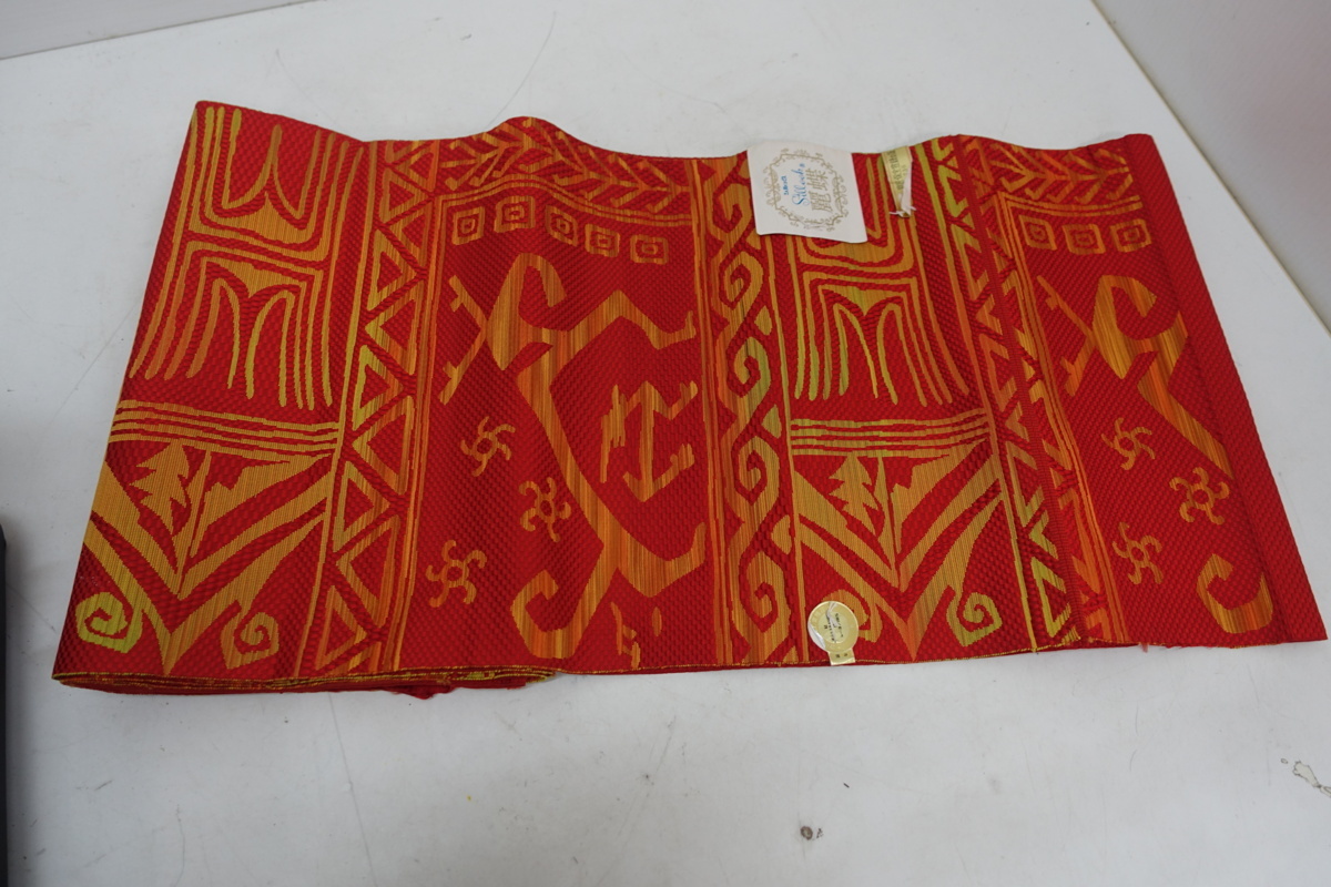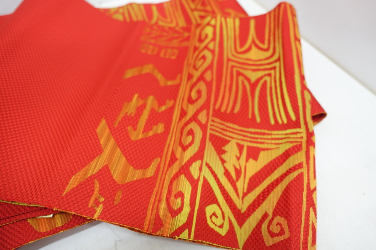 ★袋帯★ 未使用・未仕立 リメイク用にいかがでしょうか~ 綺麗な状態です。 朱色鮮やなお色目ですので和装小物つくりにいかがでしょうか? サイズ 幅30㎝ 長さ360㎝ 素材 ポリエステル100% レーヨン100% 当社のオークションは返品・交換・キャンセル等は一切お断りさせて頂いております。充分ご検討の上ご入札下さいませ。 | |