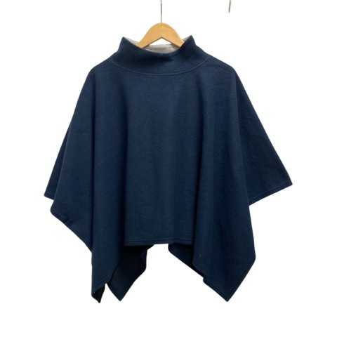 ノーブランド ポンチョ 長袖 ハイネック 無地 コットン混 CIC4769 M 紺 ネイビー レディース