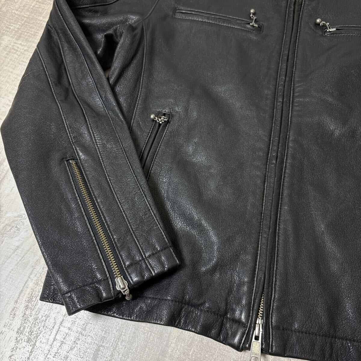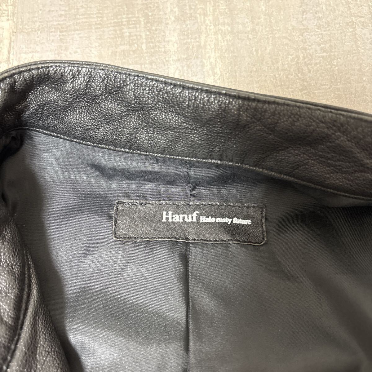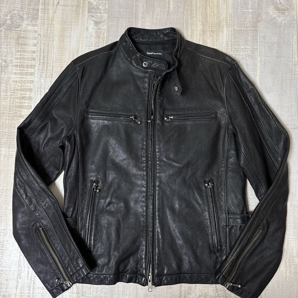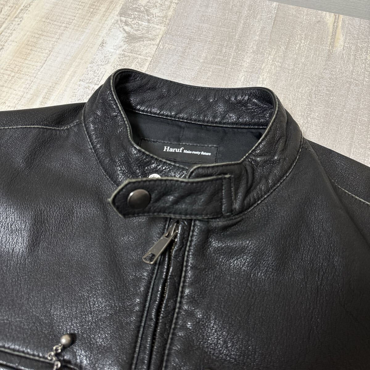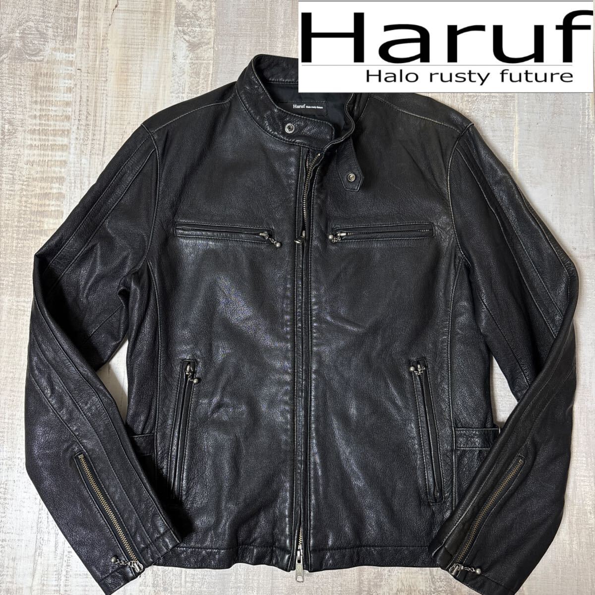 【羊革】Haruf ラム レザー シングル ライダース ジャケット ハルフ ブラック 黒 サイズM ダブルジッパー 本革 メンズ ヴィンテージ