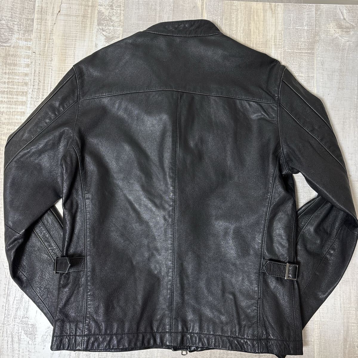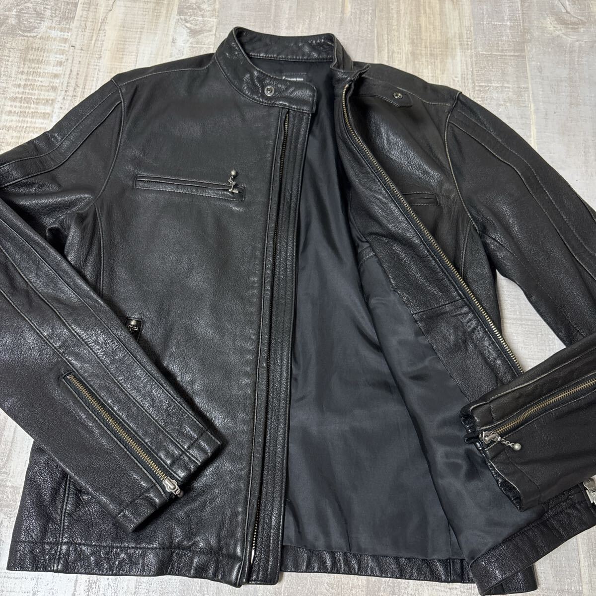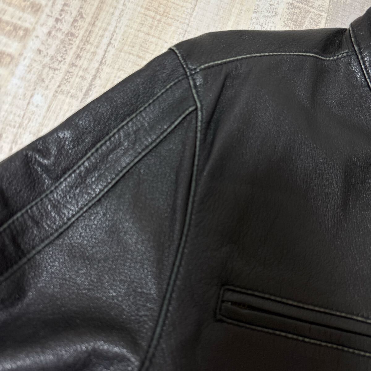 スタイリッシュな黒のレザーシングルライダースジャケット。
