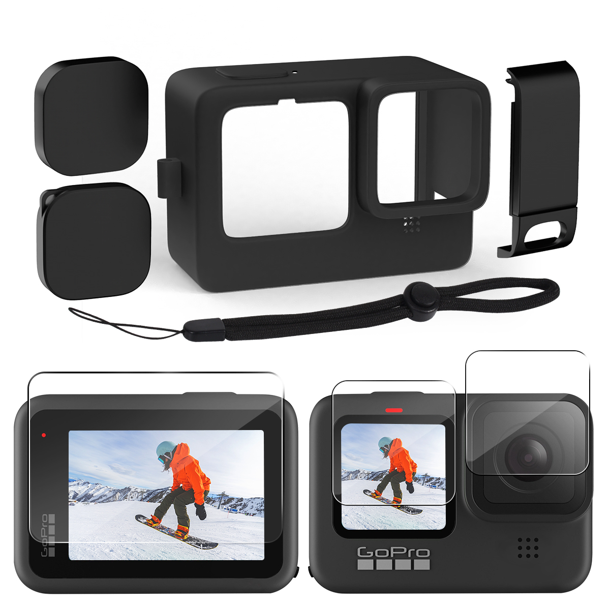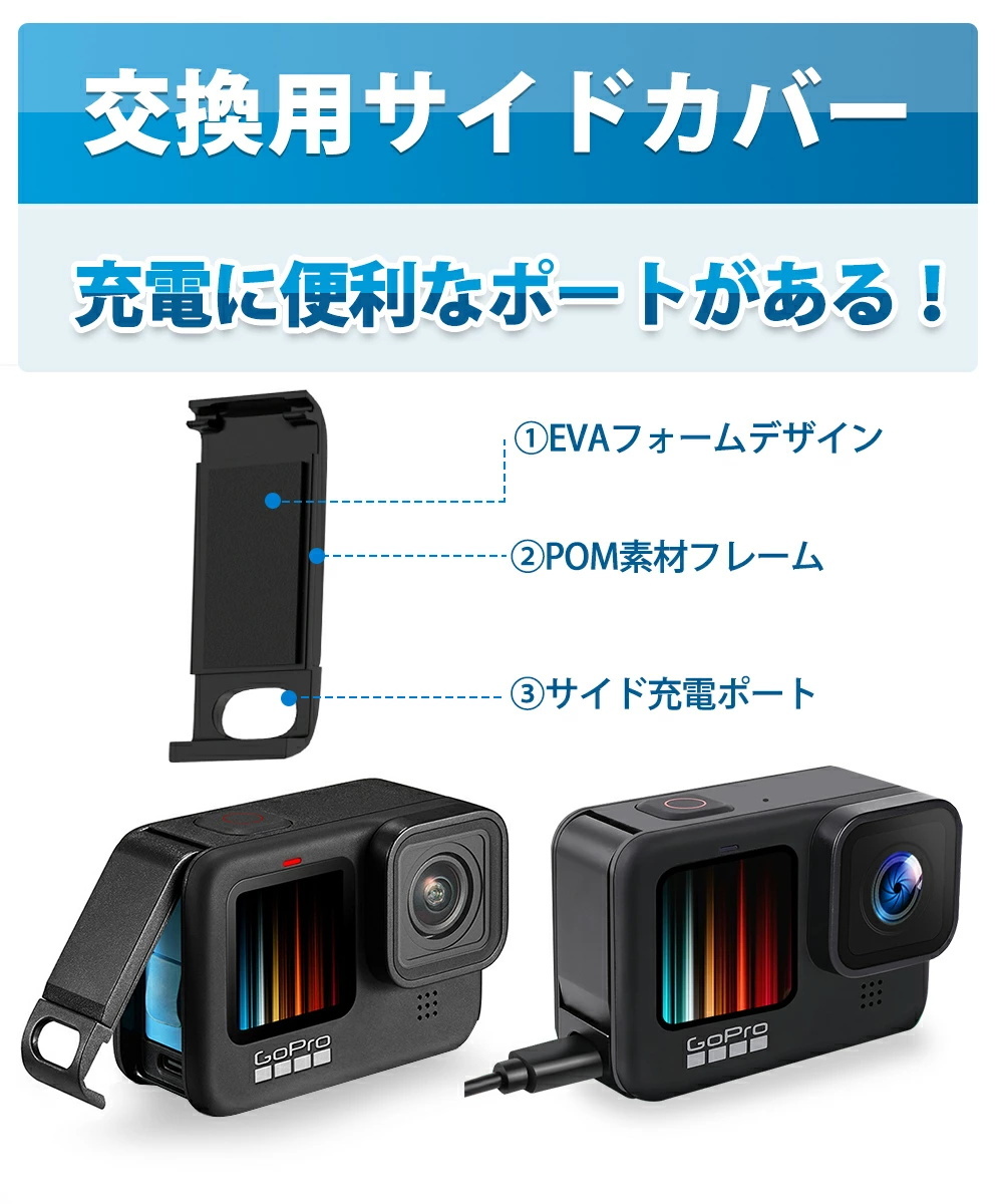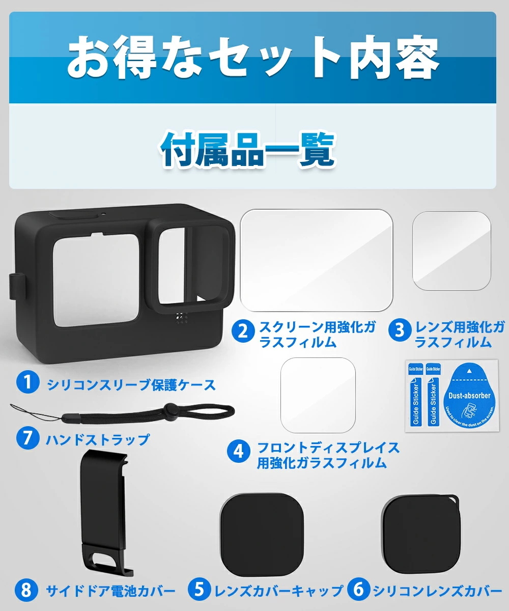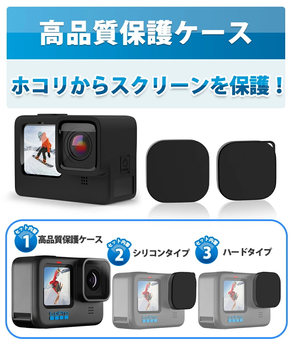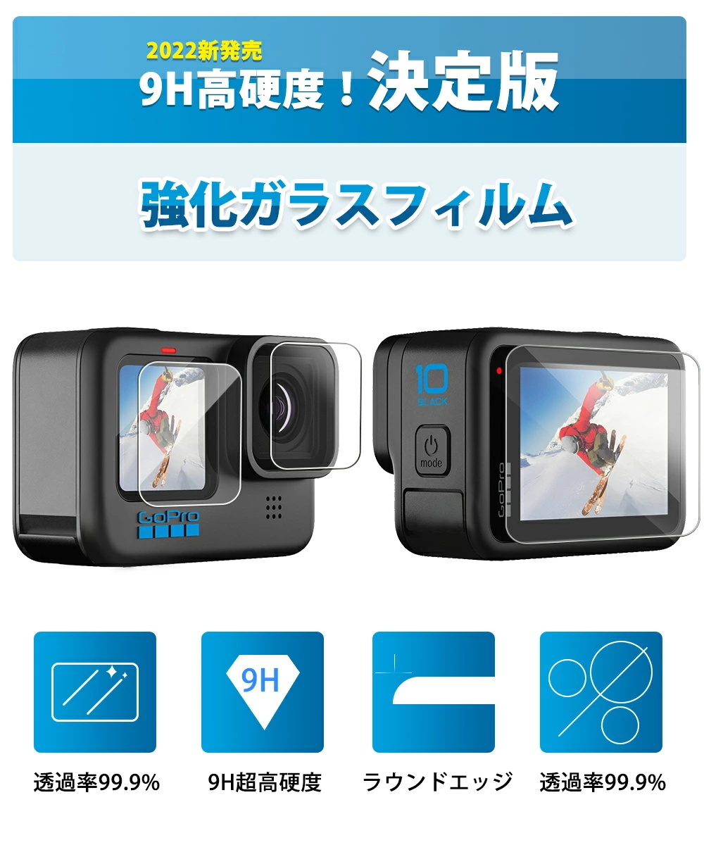 GoPro hero10/9Black アクセサリー 保護ケース 液晶フィルム3枚 液晶保護 フィルム ガラスフィルム 電池カバー