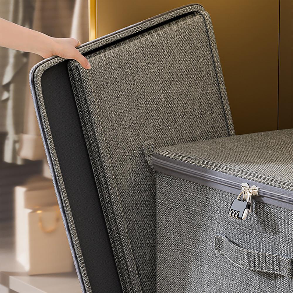 折り畳み式の収納ボックスです。ファスナーに3桁のカギを付けることが出来ますのでセキュリティも万全です。