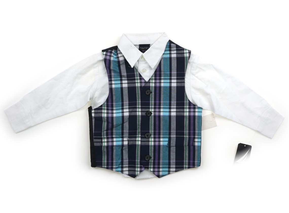実際のサイズ表記は3T。新品タグ付きですが、襟に若干の汚れがあります。4ピースセットだったようですが、シャツとベストのみです。