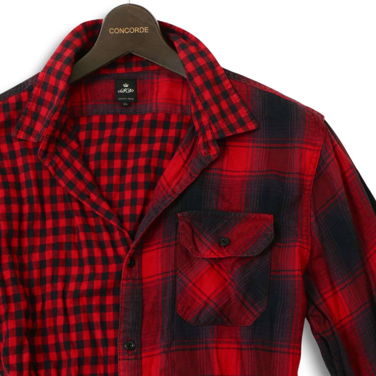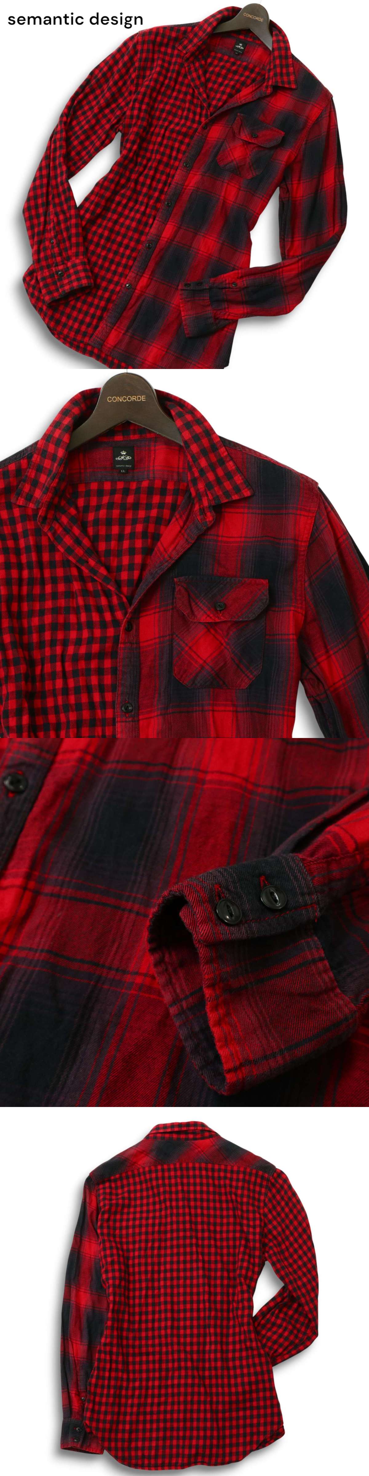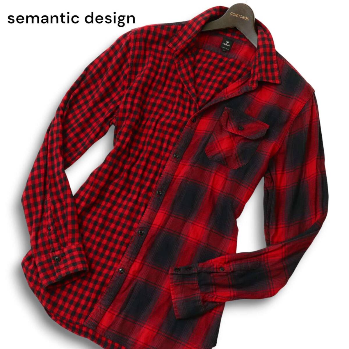 semantic design セマンティック デザイン 秋冬 クレイジー切替★ 長袖 チェック ネル シャツ Sz.LL メンズ