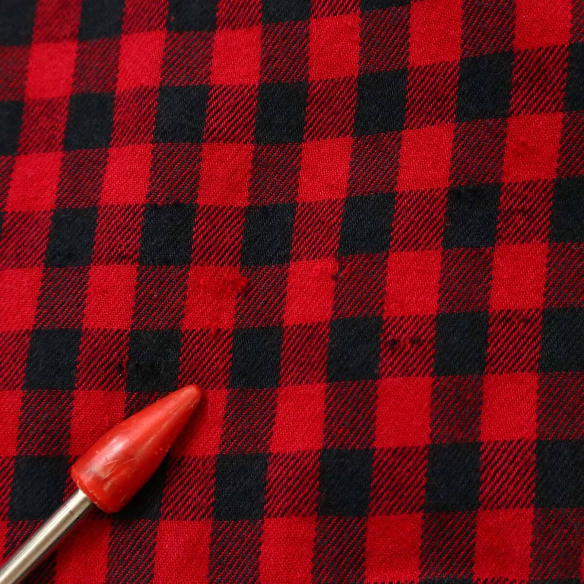 右袖のボタンの欠品、左袖の縫い目に破れ、裾にわずかなツレがございます。着用に問題はございません。