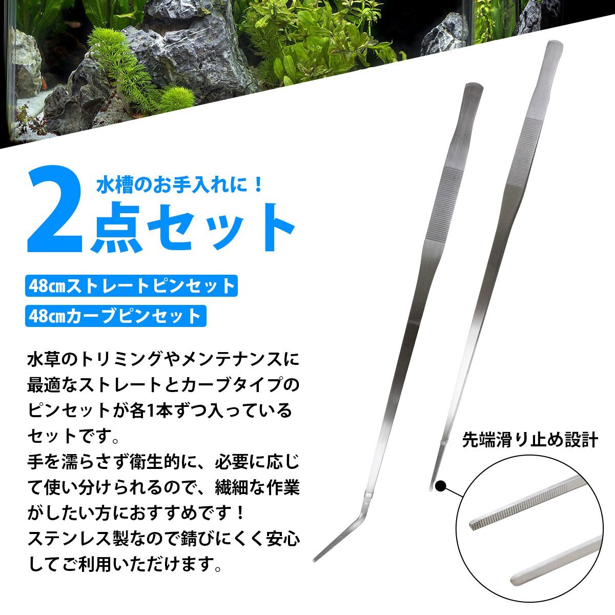 2点セット 『48cm 480mm ピンセット 2種類 ストレート カーブ型』 水槽 水草トリミングキット