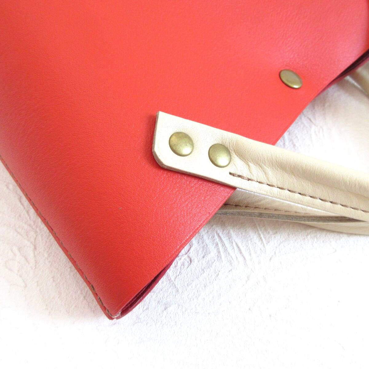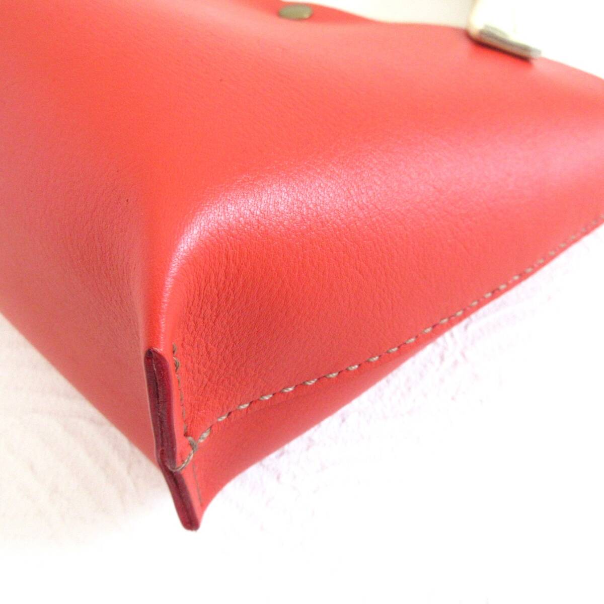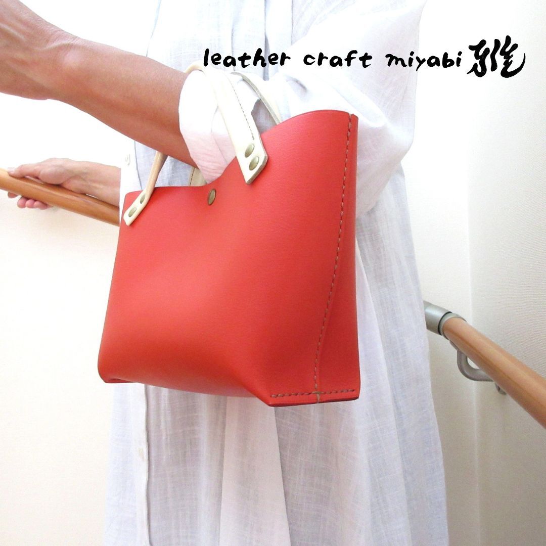 【L.C 雅】手縫い☆ショート丈♪《牛革》底マチワイド・一枚革のミニトート・レッド・0644